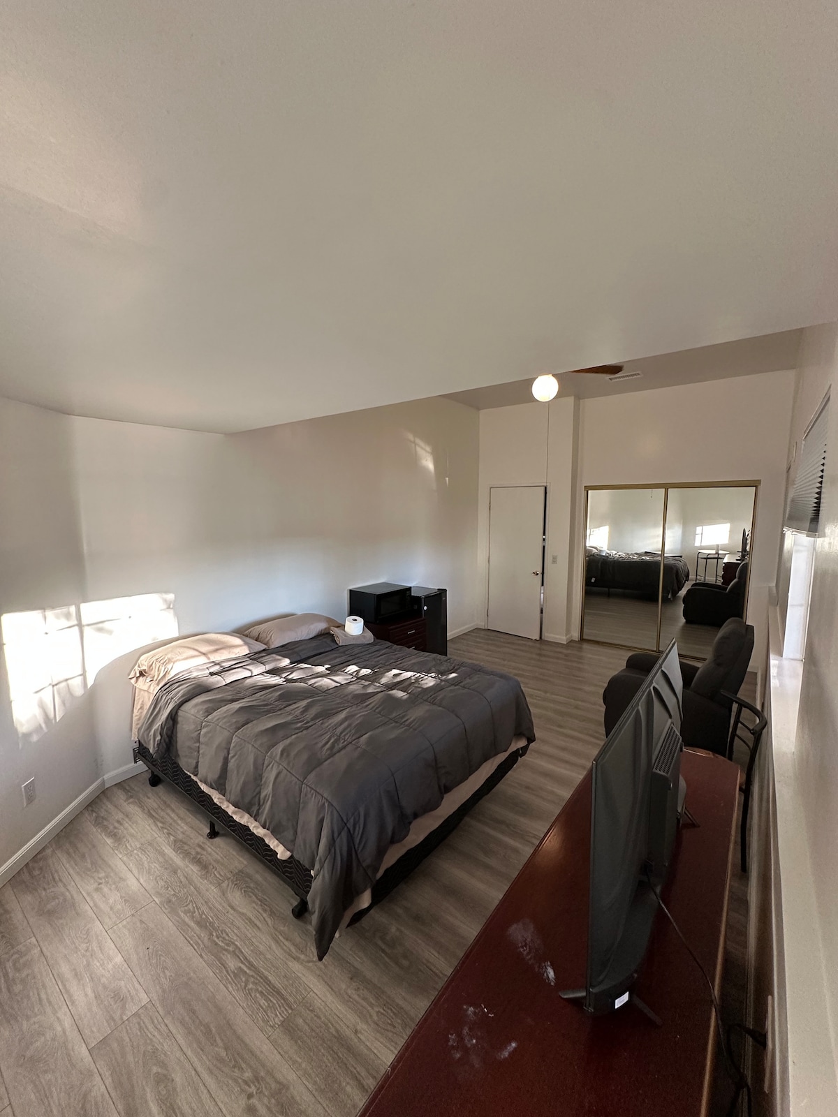 La suite degli ospiti si trova in un quartiere NUOVO/TRANQUILLO. È collegato alla casa principale ma con ingresso privato e self check-in. È un monolocale con bagno privato. La TV ha il cavo (You Tube TV), Netflix e Amazon Prime. Inoltre, forniamo asciugamani, shampoo, bagnoschiuma e balsamo. Ti preghiamo di rispettare le nostre regole della casa: - Il parcheggio è disponibile nel vialetto - Vietato fumare, svapare, droghe, alcol, feste. - Niente musica ad alto volume dopo le 20:00. - Non è consentito l'uso di scarpe all'interno della suite.