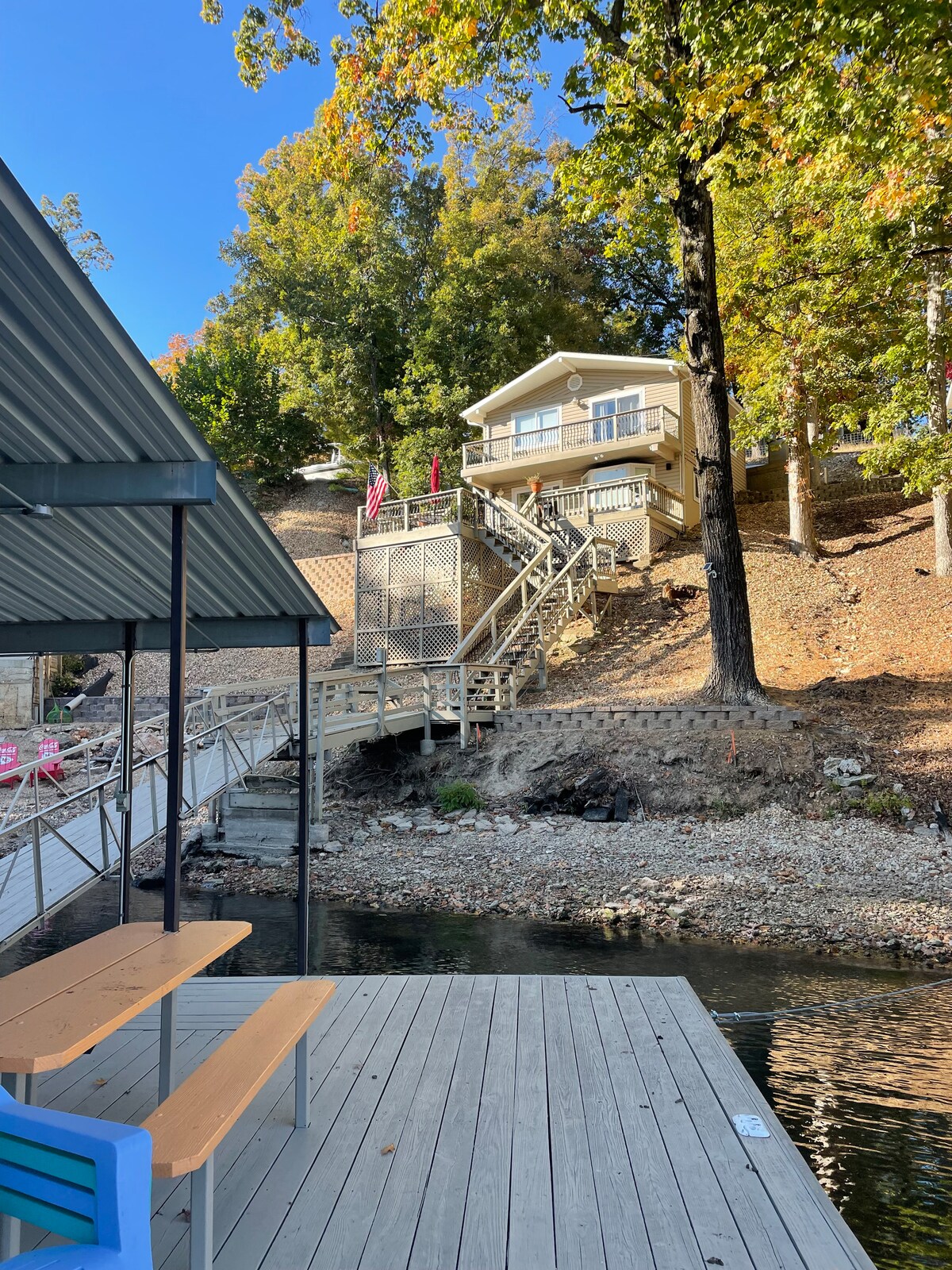 Appartata alla fine di un vialetto privato sull'estremità tranquilla del Lago delle Ozark, la nostra casa sul lago offre opportunità di svago, relax e pesca. La casa si trova sull'acqua al chilometro 67 del lago e dispone di 90 metri di costa privata. Una terrazza che si affaccia sull'acqua si trova a pochi passi da un patio dotato di barbecue a propano/carbone e zona cottura all'aperto. Sono inclusi due kayak per esplorare la costa e la sua fauna selvatica. Un'invitante vasca idromassaggio ti aspetta.