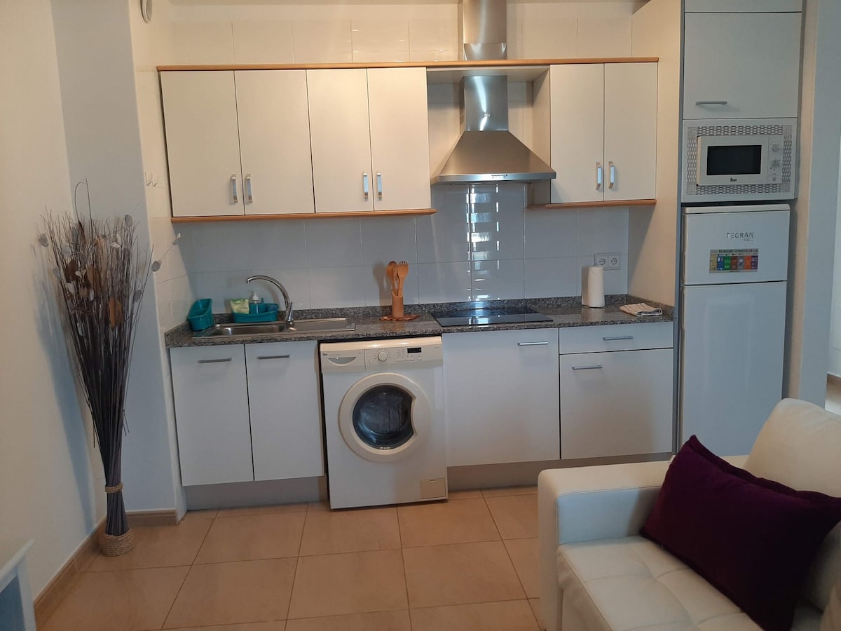 Nuovo appartamento a Puerto del Carmen, situato in un complesso molto tranquillo con piscina comunitaria con vista sul mare. La cosa migliore di questo appartamento è la sua terrazza, ha un letto rotondo per prendere il sole, una griglia esterna per cucinare e un grande tavolo per mangiare o lavorare con vista sul mare. All'interno dispone di un soggiorno con smart TV internazionale, divano molto comodo e un piccolo tavolo per la colazione. La cucina è completamente attrezzata: forno, microonde, frigorifero, pentole e stoviglie.