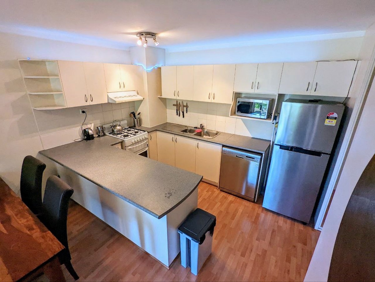 Appartamento privato moderno e splendidamente arredato, situato di fronte a una tranquilla proprietà di Cottesloe. Ingresso indipendente e servizi privati. A 10 minuti a piedi dalla spiaggia di Cottesloe, dalla stazione ferroviaria e dai negozi locali. 1 camera da letto, letto king size, smart TV, cabina armadio e bagno privato. Cucina completamente attrezzata separata e una zona soggiorno/pranzo, con un piccolo patio e barbecue. Aria condizionata a ciclo inverso in tutto questo spazioso appartamento. Offriamo tariffe scontate settimanali e mensili. Parcheggio gratuito per 1 auto.