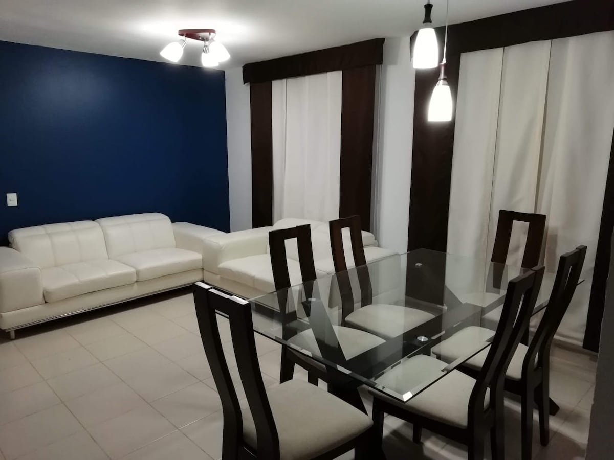Goditi questo appartamento completamente indipendente, tranquillo e centrale. A soli 5 minuti a piedi dal centro di Funza. Le due camere sono molto confortevoli, l'alloggio è dotato di tutto il necessario per un ottimo soggiorno e si ha accesso gratuito a Internet. Posizione privilegiata, hai ristoranti, negozi e supermercati a portata di mano, inoltre a un isolato puoi prendere i mezzi pubblici. C'è un parcheggio a pagamento a 4 isolati dall'appartamento.