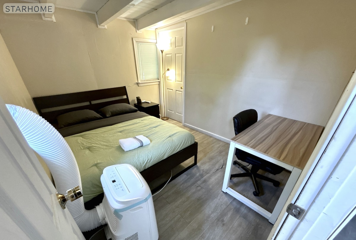Il tuo rifugio privato dal coronavirus! Appartamento pulito a fondo da professionisti tra un ospite e l'altro. 65 metri quadri con 1 camera da letto e 1 bagno vicino al centro di Mountain View e Caltrain. Cortile privato, cortile in comune, lotto di 465 metri quadrati, animali domestici ammessi. Garage condiviso solo per riporre oggetti, nessun parcheggio coperto, parcheggio gratuito nel vialetto/in strada. Letto matrimoniale grande + divano letto, smart TV con Netflix, cucina/ufficio/zona pranzo, WiFi/Ethernet veloce e affidabile, aria condizionata, lavatrice e asciugatrice.