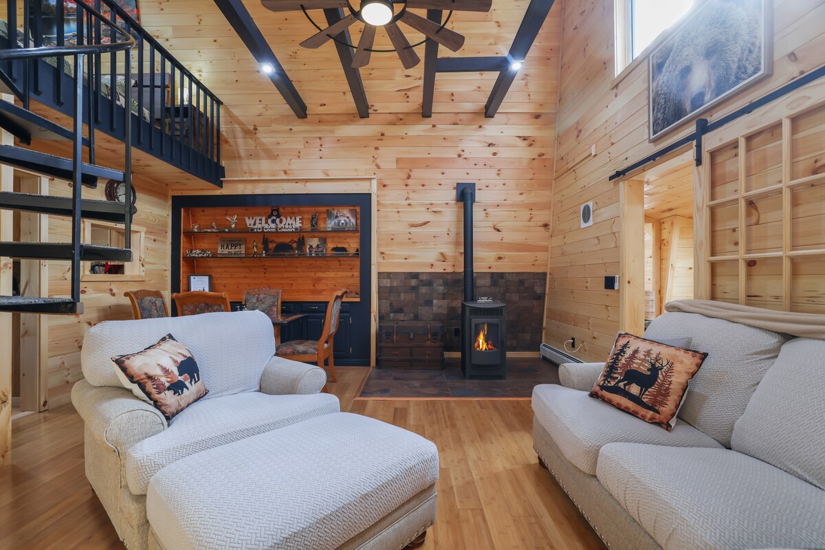 Fuggi in un'accogliente vacanza autunnale vicino a Kalahari, Mount Airy Casino, Crossings Outlets, Lake Wallenpaupack e Tobyhanna State Park a 2 miglia di distanza con fogliame autunnale e aria di montagna, vista sul lago, fauna selvatica e punti di pic-nic. Immerso in una strada privata accidentata. Questo rifugio in stile spa ha una vasca da bagno, doccia a pioggia, luci intelligenti, cucina con piano cottura intelligente, letti morbidi, specchi a LED con sincronizzazione musicale e divertimento arcade retrò. Perfetto per coppie, feste di compleanno o famiglie che cercano un soggiorno tranquillo a Poconos con servizi moderni.