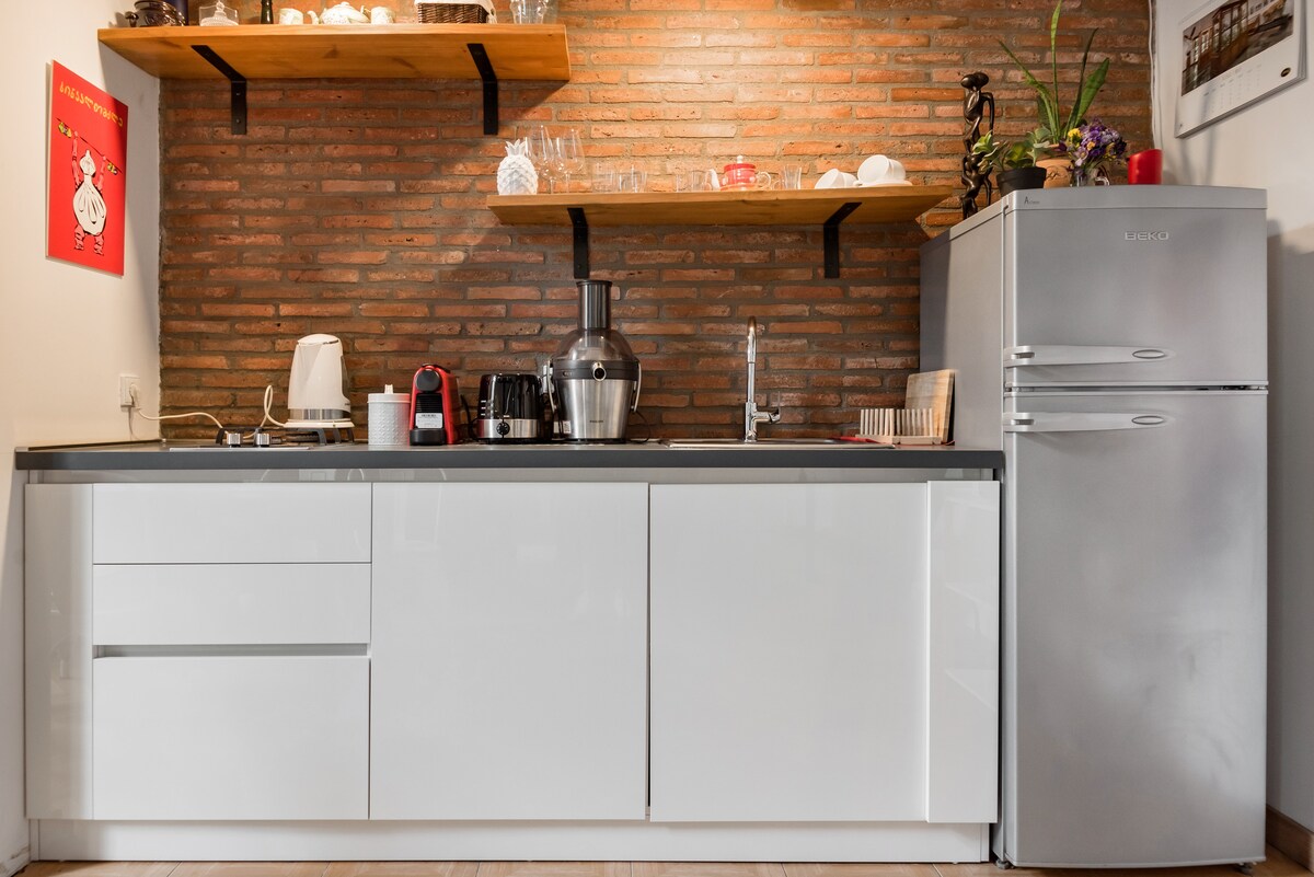 Questo studio di design era originariamente sede del famoso artista georgiano Avto Varazi. Gli alti soffitti creano una sensazione di spazio che è accentuata da pareti in mattoni a vista con infissi colorati e opere d'arte espressive che aggiungono un tocco finale. Situato proprio nel cuore del vecchio quartiere bohémien del centro di Tbilisi. Basta uscire per trovare luoghi popolari, bup, bar, esplorare le aree storiche vicine, i luoghi culturali e godersi la vivace vita notturna. L'alloggio è adatto a coppie, avventure in solitaria, viaggiatori d'affari e famiglie con bambini. Può ospitare perfettamente 5 persone. Il nostro appartamento si trova al secondo piano di un edificio del XIX secolo molto vicino a RUSTAVELI AVENUE . È stato completamente ristrutturato a marzo 2018 ed è dotato di tutto il necessario durante il vostro soggiorno. Abbiamo cercato di combinare il suo fascino rustico con un design fresco, moderno e funzionale. Abbiamo pensato attentamente a ogni piccolo dettaglio per far sentire i nostri ospiti a casa propria. L'appartamento ha una camera da letto separata con un letto matrimoniale (180/200) e un armadio, un salotto/zona pranzo con un balcone di fronte alla strada, una cucina completamente attrezzata e un piccolo e accogliente soppalco (camera da letto Mezzanino) con un divano letto (150/190) e un materasso a pavimento nel soggiorno per una persona. ● La metropolitana Rustaveli e le fermate degli autobus sono a soli 2 minuti a piedi dall'appartamento. ● I luoghi più popolari vicino all'appartamento includono: Hotel Radisson Blu, Hotel Rooms, Hotel Stamba, Hotel Bitlmor, Vera Park (Samaia garden), Pub Nali, Tennis Court, Casino Iveria, Casino Biltmor, Opera House, Cafe Lolita, Cafe Stamba, Rustaveli Theatre, Freedom Square, Museums, Art Salons, Tbilisi Concert Hall, Marjanishvili theater, centri commerciali. Vicino a tutto !!! Самое сердце города, в шаговой доступности проспект Руставели L'intera casa è disponibile per gli ospiti ! Wi-Fi ● gratuito e veloce; TV ● a schermo piatto con canali internazionali; ● Aria condizionata; Sistema di riscaldamento● centralizzato; ● Cucina completamente arredata (frigorifero, bollitore elettrico, tostapane, forno a microonde forno, piano cottura, succhi di agrumi elettrici); ● Caffè, tè e zucchero; ● Lavatrice; lenzuola e asciugamani di● alta qualità; ● Asciugacapelli, ferro e asse da stiro; ● Ombrello; ● sapone e carta igienica; - Saremo disponibili per tutto il vostro soggiorno via telefono o posta :). Viviamo solo pochi isolati di distanza dal luogo e saranno felici di aiutarvi. - Su richiesta possiamo organizzare il trasferimento per i nostri ospiti (un costo aggiuntivo di sola andata 20$ /Gli ospiti pagano direttamente all'autista) - È disponibile anche un self check-in/out con cassetta di sicurezza; La casa si trova nel centro della città circondata da palazzi storici e negozi indipendenti. Cena in ristoranti a conduzione familiare, pub e caffetterie, sfoglia i mercati locali e le boutique vintage ed esplora i musei e le gallerie nelle vicinanze. mezzi pubblici (metro, fermata bus a soli 2 minuti a piedi dall'appartamento) - Gli orari di check-in e check-out possono essere flessibili, a meno che non ci siano ospiti arrivo/partenza per lo stesso giorno. In questo caso il check-in sarà dalle 14:00. e check-out alle ore 12.00