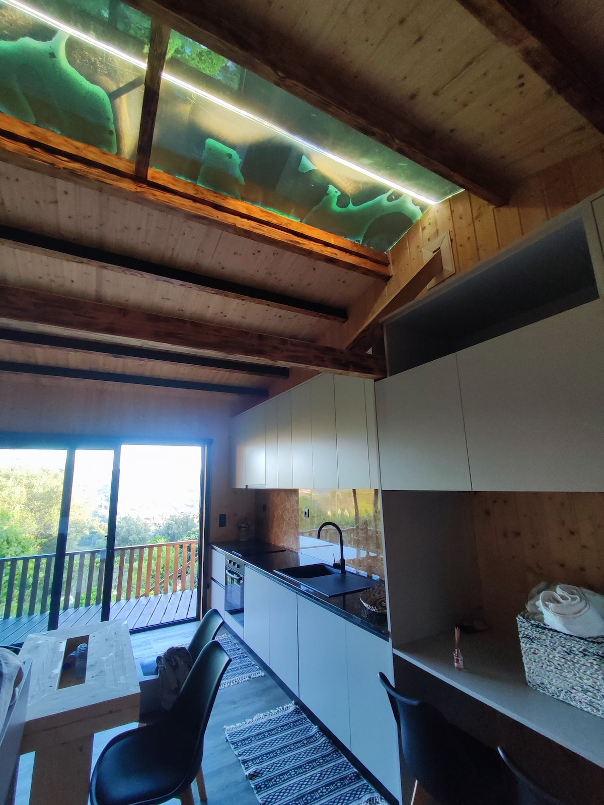 Con finestre panoramiche che conferiscono all'ambiente una sensazione di ampiezza, consentono l'ingresso di luce naturale e viste mozzafiato. Dispone di un soggiorno, una zona pranzo completamente attrezzata, una camera da letto indipendente con bagno privato e cabina doccia, un bagno in camera e una Jacuzzi SPA su una piattaforma esterna. Le ville Monte dos Xistos, in montagna e circondate da vigneti e boschi, godono di una posizione a 10 km dal centro storico di Guimarães