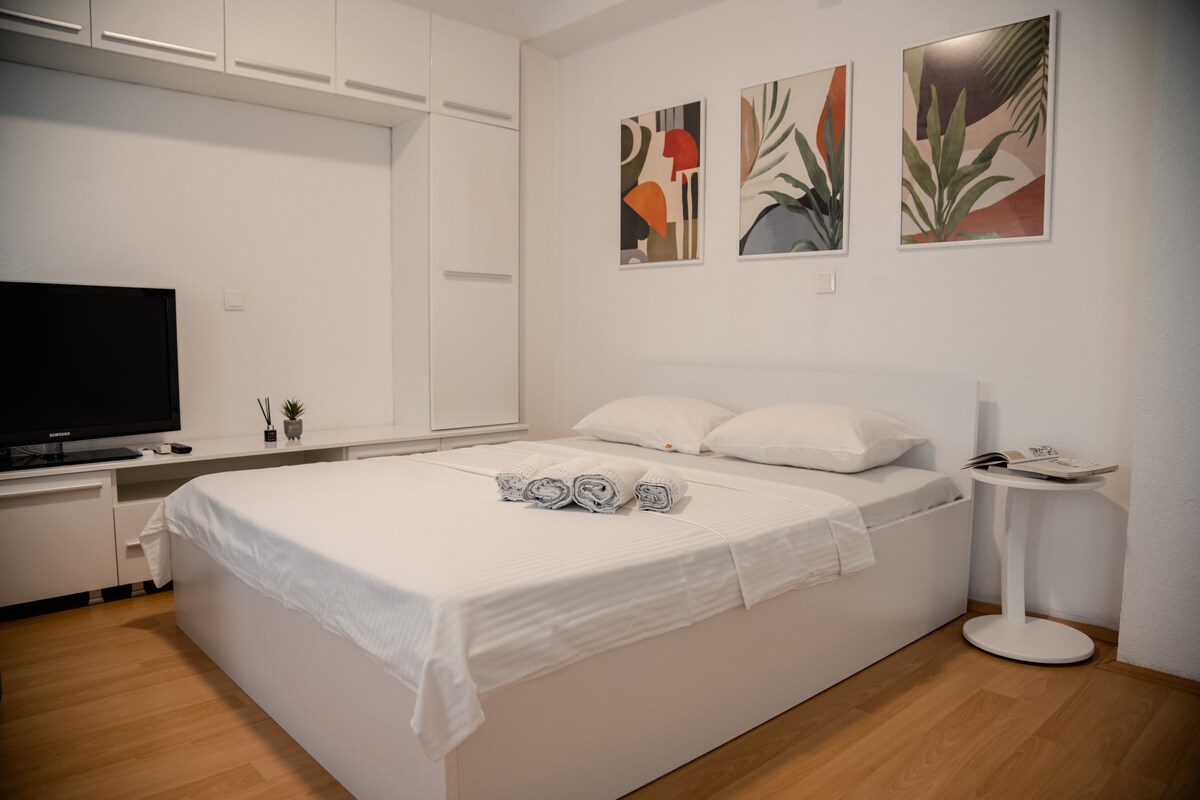 Situato a 50 metri dalla Porta Superiore, l'appartamento fa parte di una nuova casa. Dispone di un ampio soggiorno con balcone con vista sul lago di Ocrida, 2 camere da letto - una con 3 letti (1 matrimoniale e 1 singolo) con balcone e una camera con 2 letti singoli - e 1 bagno. Completamente attrezzato con cucina, salotto, lavatrice, TV a schermo piatto e connessione Wi-Fi veloce. Posti auto sono disponibili gratuitamente vicino all'appartamento. L'aeroporto di Ocrida-San Paolo Apostolo dista 10 km in auto.