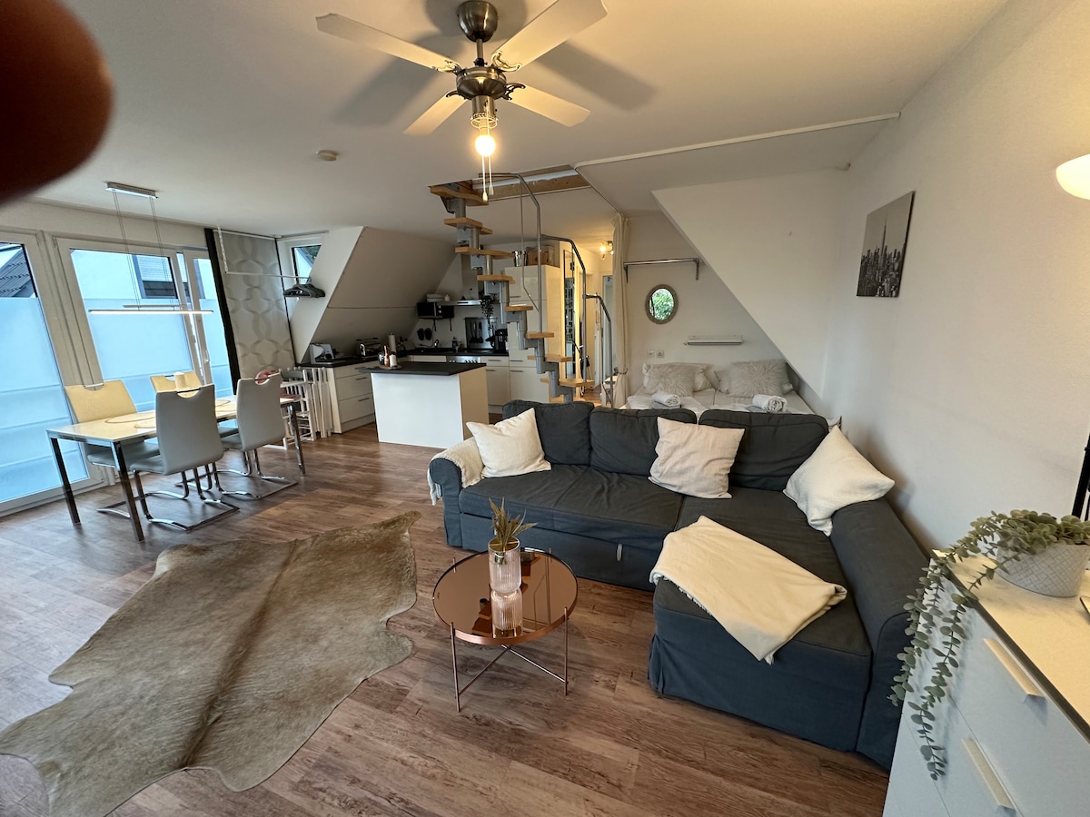 Questo appartamento è il risultato della passione per l'interior design, del piacere di ospitare e di molte, molte ore di lavoro come costruttori di case. Noi, Lisa & Heinrich, vi diamo il benvenuto a Bad Bentheim. Il nostro appartamento con fascino è situato in una posizione centrale e offre circa 70 metri quadrati di spazio per rilassarsi e distendersi. L'esclusivo carattere loft è ideale per un soggiorno per 2 persone con la possibilità di ospitare una terza persona.