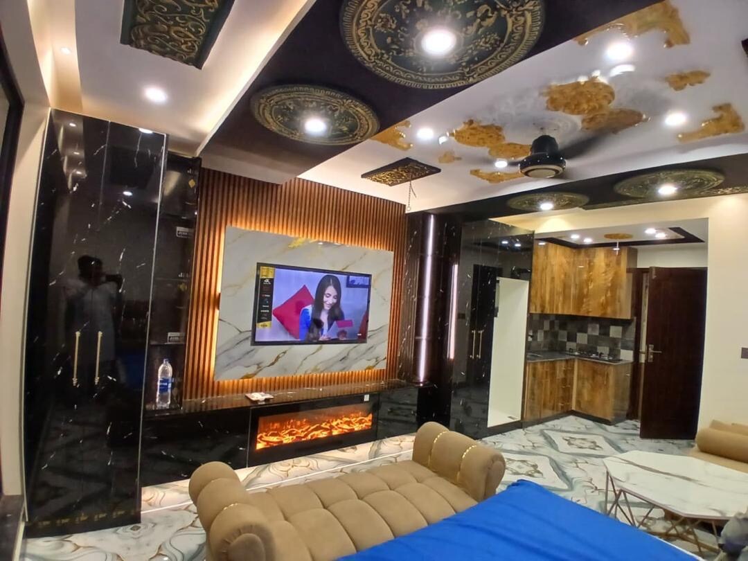 Experience refined living in this beautifully designed canal-view studio. The space features a plus king-size bed, a sleek frosted-glass bedroom partition, and a stylish lounge with a velvet sofa set and a 42” LED, Bose HT, entertainment setup.Soft, warm lighting creates a calm, hotel-style atmosphere, making it perfect for relaxing after a long day. Ideal for romantic getaways, business trips, or anyone who appreciates comfort with a touch of luxury.5-10 min away from airport and from gulberg .