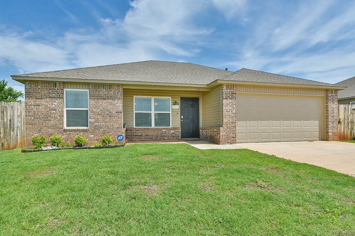 Porta tutta la famiglia in questo fantastico alloggio con tanto spazio per divertirsi. A pochi passi da un parco. A meno di 3 km dal centro di Mustang Town, che offre pass giornalieri a prezzi accessibili per la piscina comunitaria a ingresso graduale (stagionale), la palestra, la parete di arrampicata, il campo da disc golf e altro ancora! Facile accesso a FAA, armeria, aeroporto, ristoranti, Bricktown, centro congressi e Scissor Tail Park. Tutti i mobili e i letti sono nuovi, acquistati nell'aprile 2022. Disponibile ricarica per veicoli elettrici di livello 2.