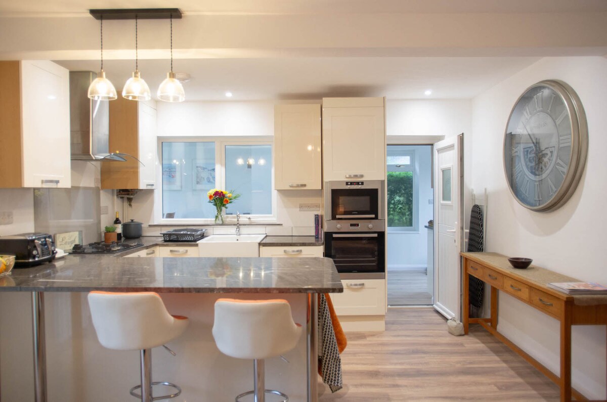Casa bifamiliare con 3 camere da letto, molto moderna e recentemente ristrutturata, a Crownhill. Cucina/sala da pranzo a pianta aperta, perfetta per occasioni sociali. Ampia sala frontale con divano a forma di "L" e caminetto. 2 ampie camere da letto con letti king-size e un bagno familiare di dimensioni ragionevoli e completamente attrezzato. Una terza camera da letto più piccola con un letto matrimoniale e Il divano letto al piano di sotto crea un ampio quarto letto matrimoniale. ***Nota: la nuova vasca idromassaggio da 6-8 posti è un servizio aggiuntivo. Si prega di richiedere ulteriori dettagli***