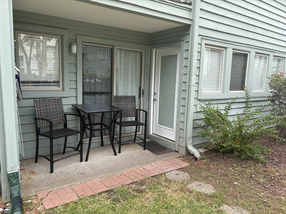 Questa unità è un sogno degli affittuari per il divertimento estivo! Due camere da letto e due bagni completamente attrezzati che possono ospitare fino a sei persone. Esci dalla porta sul retro e sei a pochi passi dalla piscina interna/esterna, dalla vasca idromassaggio, dalla sauna e dalla club house per rilassarti. Goditi il bellissimo cortile attrezzato con barbecue e tavoli da picnic. Dall'altra parte del parcheggio si trova la piscina per famiglie con splash zone e un fiume lento. Campi da sottaceto, campi da tennis e da basket per tutto il tuo divertimento. 5 minuti a piedi dalla spiaggia.