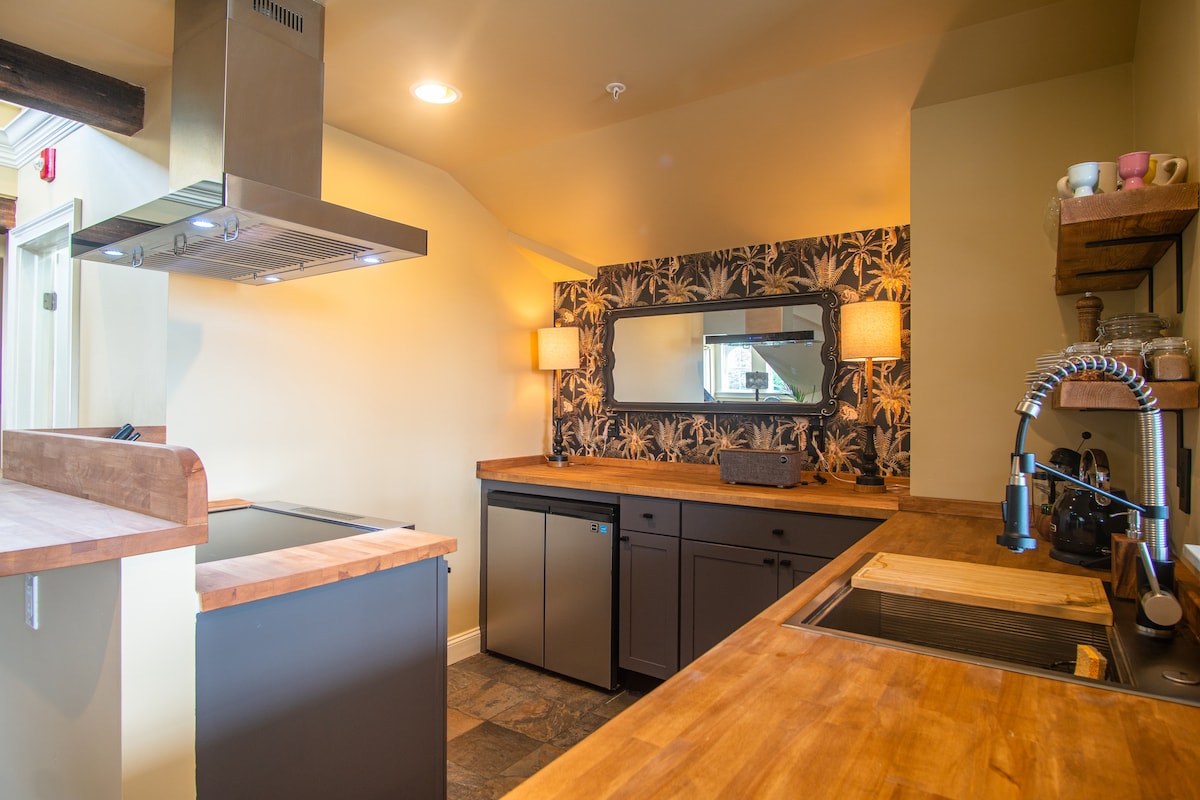 Scopri il fascino della storica Mystic dalla nostra casa vittoriana del 1863. Un tastierino numerico ti permette di accedere alla tua camera matrimoniale privata con bagno. Il nostro obiettivo era quello di creare un ambiente simile a un boutique hotel, separato dalla casa principale. Sul retro della casa, la suite degli ospiti è accessibile tramite un ingresso privato. Entra nella camera da letto e trova il tuo bagno privato in fondo a un breve corridoio. Questo spazio è tuo. Forniamo un mini frigo e una macchina per il caffè, ma non c'è cucina e non hai accesso al resto della casa.