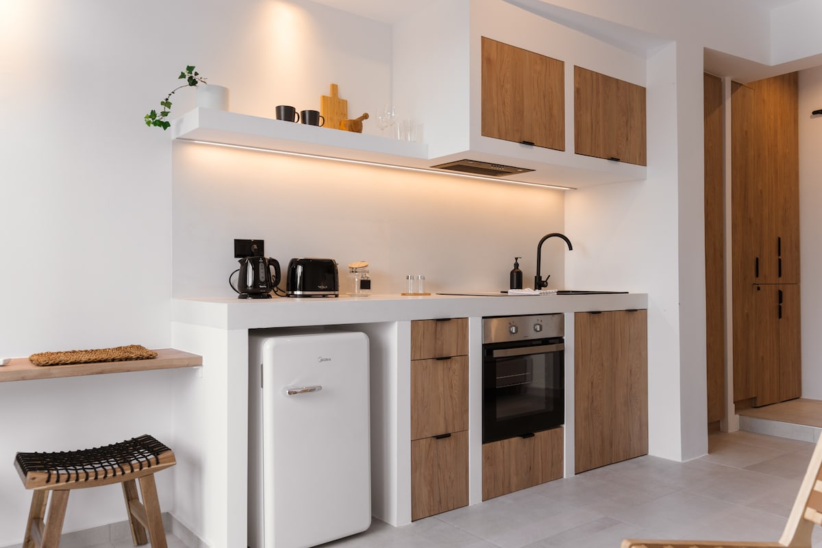 Una fuga privata sul tetto nel cuore della città di Chios! Questo moderno monolocale offre un soggiorno tranquillo con una splendida vista panoramica sul Mar Egeo. Il suo punto forte? Un'enorme terrazza privata con sedie a sdraio, tavolo da pranzo e viste mozzafiato sul mare e sull'alba. Ideale per viaggiatori solitari, coppie o nomadi digitali in cerca di comfort, tranquillità e comodità, a pochi passi da caffè, negozi e dal porto.