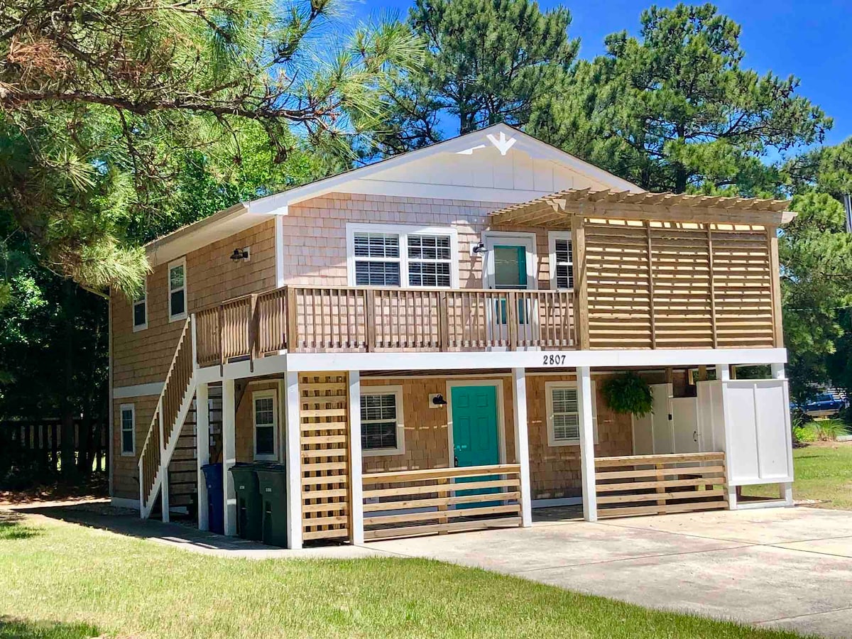 Cottage sulla spiaggia recentemente ristrutturato tra le autostrade di Nags Head, a 5 minuti a piedi dall'accesso alla spiaggia. Ci sono 2 cose che sono difficili da trovare in un cottage a OBX: un cortile recintato e una terrazza al 3° piano da cui si può vedere l'oceano. Questa casa ha entrambe le cose! Trascorri la giornata in spiaggia e rilassati sotto gli alberi a The Shady Lady. Biancheria, articoli da spiaggia, griglia, wifi e molto altro inclusi. Situato a pochi minuti da ristoranti, negozi e alimentari di Nags Head.
