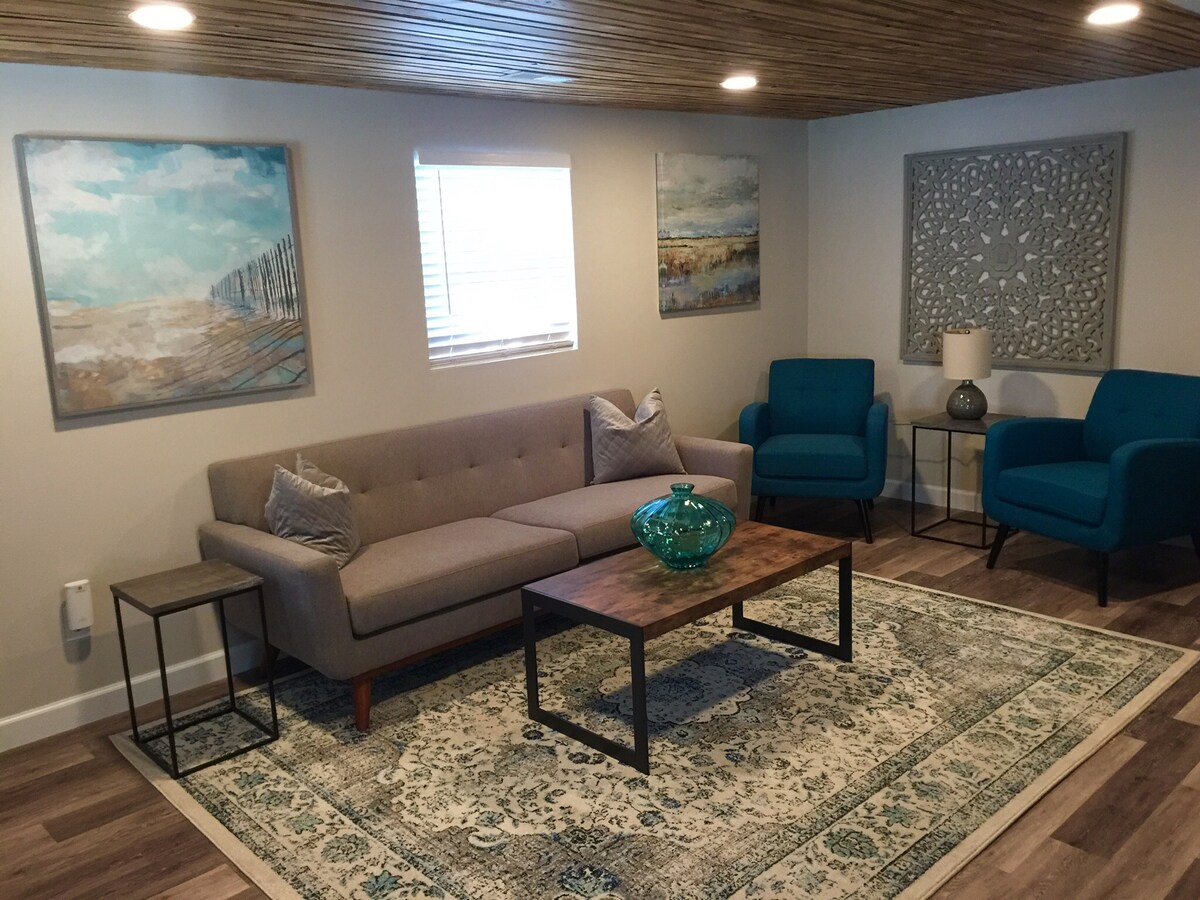 Rilassati e ricaricati in quest'oasi di quiete ed eleganza. Una vacanza perfetta per familiari e amici con due camere da letto, un bagno, un accogliente soggiorno e una cucina da chef con due spazi abitativi privati all'aperto. Rilassati nella vasca all'aperto dopo una giornata trascorsa alla scoperta di tutto ciò che l'isola ha da offrire. La casa si trova sul lato ovest dell'autostrada, perfetta per una passeggiata al tramonto lungo il suono e un facile viaggio in auto verso la spiaggia o il molo di pesca di Avalon.