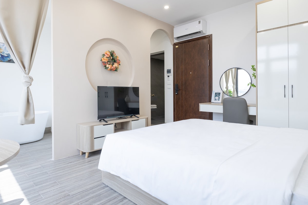 Hotel sang trọng, cửa sổ, bồn tắm lớn ở cầu giấy