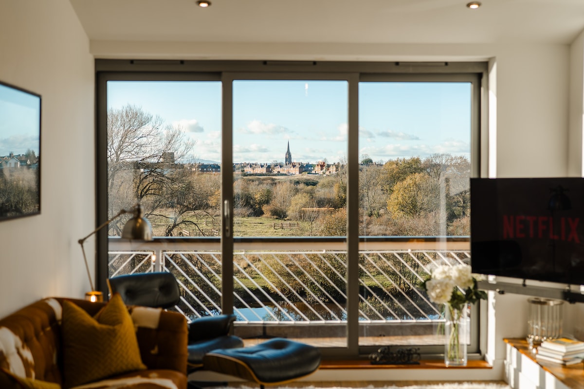 Spectacular riverside views! 2 beds, parking!