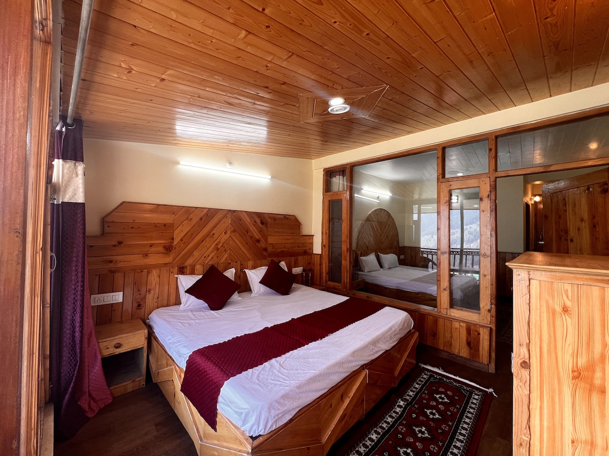 You get a big terrace with three rooms ,ideal for a stay in Manali , with richly decorated huge rooms to accommodate guests and all luxurious facilities in the room , modern amenities and services to give travellers utmost comfort , with river facing balconies in the rooms ,located on the main road 2 Kms before mall road ... camp fire , Dj facilities also available on request ..breakfast lunch & dinner not included in this price it will be charged extra. room are alotted on quad sharing basis