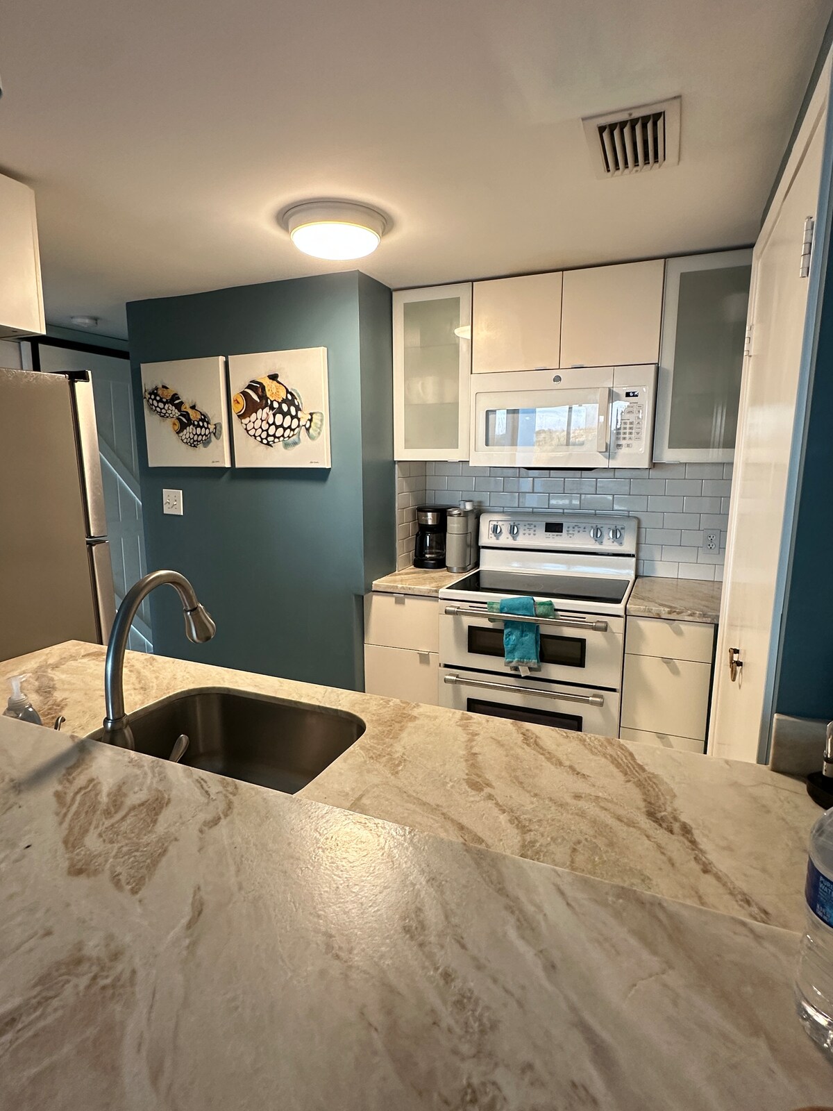 HIGHLY sought after quiet north side condo. Cool, relaxing vibes. Beautifully renovated w/ a well equipped kitchen, 3 streaming TV’s high speed internet, KING BEDS in both huge masters w/ a large tropical loo w/ double vanity, 800 feet to the sand! ENJOY Pool and Tennis/Pickle steps away, FREE Beach Bikes! The North side is the locals favorite for Sharks Teeth! Main Beach, Skate Park, Ft. Clinch Walking distance to Basketball, Sandbar & Salt Life restaurants plus a Quickie mart.