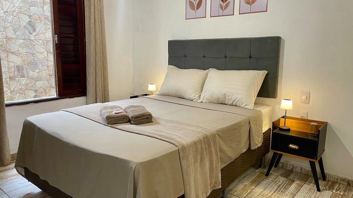 Apartment located in the geographical center of Ponta Negra Beach. It features 2 Queen beds, ocean view from the window, bathroom with hot water, TV, Wi-Fi, microwave, coffee maker, sandwich maker, air conditioning, and 24-hour reception. It also includes free garage parking and swimming pool. Very close to restaurants and entertainment areas. Breakfast available in the same building (additional charge).