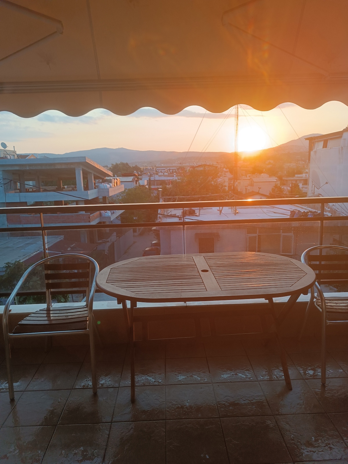 Un appartamento completamente attrezzato al 3 ° piano , arredato personalmente con uno stile artistico eunico. Splendida vista sul mare !! - L'appartamento dista 8 km dal centro città, 8 km dall'aeroporto di Salonicco e 50 metri dal mare. - 1 camera da letto con un letto matrimoniale e un rilassante materasso premium - 1 divano letto nel soggiorno - Ti forniamo tutto il necessario per garantire un soggiorno piacevole come lavatrice, armadio grande, altoparlanti di alta qualità ecc. - Anche gli animali domestici sono i benvenuti