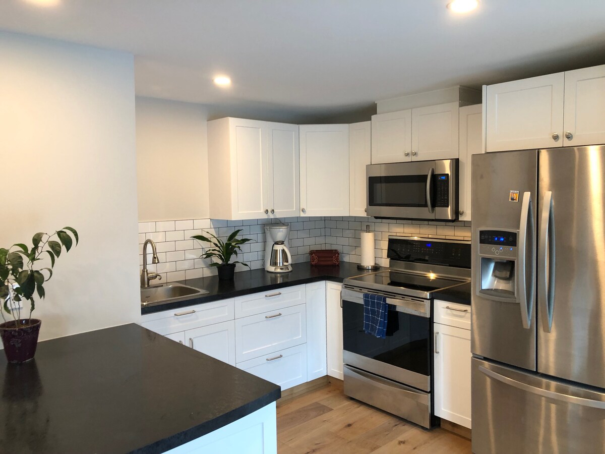 Nuovo di zecca di 1.000 piedi quadrati e tutto il necessario per un soggiorno confortevole! Due camere da letto , ognuna con un letto matrimoniale grande e una con TV. Il divano ha un letto estraibile matrimoniale. La cucina è attrezzata con tutto il necessario . La suite offre un patio coperto privato per rilassarsi con vista sul giardino e sul lago e sulle montagne di Kootenay. Comodo parcheggio in loco per un'auto a cui si accede dal vicolo. 10 minuti a piedi in discesa verso il centro di Nelson, è un po' una passeggiata per tornare indietro essendo una città di montagna.