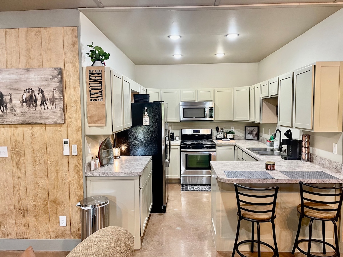 Il Bourbon Skyline è il tuo passaporto per un'esperienza indimenticabile nel Kentucky. Questo ranch con 4 letti e 3 bagni completi, recentemente ristrutturato e situato su 8 acri, è l'emblema del comfort e del fascino del Kentucky. La posizione in collina del Bourbon Skyline offre splendide viste sui paesaggi del Kentucky. È il meglio di entrambe le realtà: in campagna e vicino a tutto! Zona pranzo all'aperto, tavolo da fuoco e vasca idromassaggio, corn hole e pickleball! A breve distanza in auto da Louisville, Lexington, Mammoth Cave e molto altro ancora!