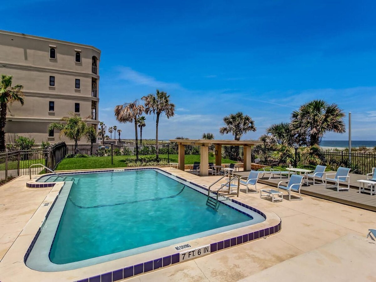 Che tu voglia goderti la tranquillità di una spiaggia privata o la vivace ristorazione e l'intrattenimento della vita notturna di Jax Beach, questo appartamento sull'oceano è la meta ideale per te. L'oceano è a pochi passi attraverso la sabbia e può essere ammirato dal balcone privato. Rilassati in piscina o nel famoso Oceanfront Park, situato accanto, che offre un campo da pallavolo completo. Situato a dieci minuti dalla Mayo Clinic e a pochi passi da numerosi bar e ristoranti locali.
