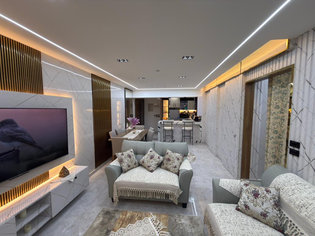 Goditi una vacanza all'insegna dello stile nel nostro attico in centro, nel cuore di New Cairo. Vicinissimo al Cairo Festival City, al centro commerciale 5A by Waterway, a centri commerciali, ristoranti e alla tangenziale. Ci piace stare in posti che rispettano la privacy e la buona energia, ed è quello che proverai quando entrerai in casa. Potrai goderti l'aria fresca sul tetto, con un'illuminazione calda e posti a sedere accoglienti, e troverai pace all'interno della casa, con tutti i mobili nuovi di zecca, macchina da caffè, smart TV e aria condizionata completa