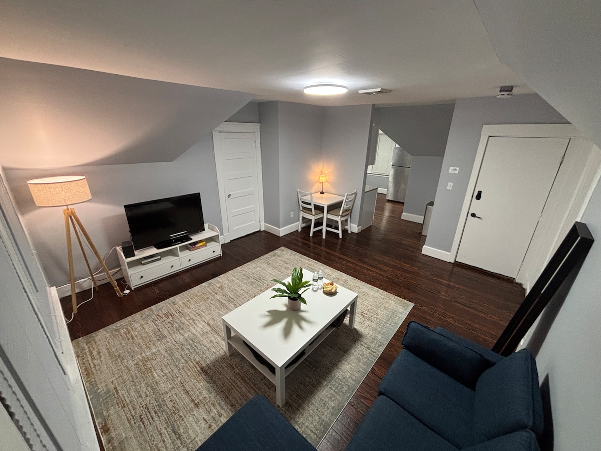 Welcome to your retreat in the heart of Westville. This apartment features a spa-like bathroom and a cozy living room with a super-comfy couch and large flatscreen TV. Relax in this centrally located oasis near Yale’s football stadium, Westville Bowl, local art studios, coffee shops, and top restaurants just steps away. Perfect for extended stays, traveling professionals, visiting faculty, or anyone seeking a convenient home base this winter. Discounts for stays of 30+ days.