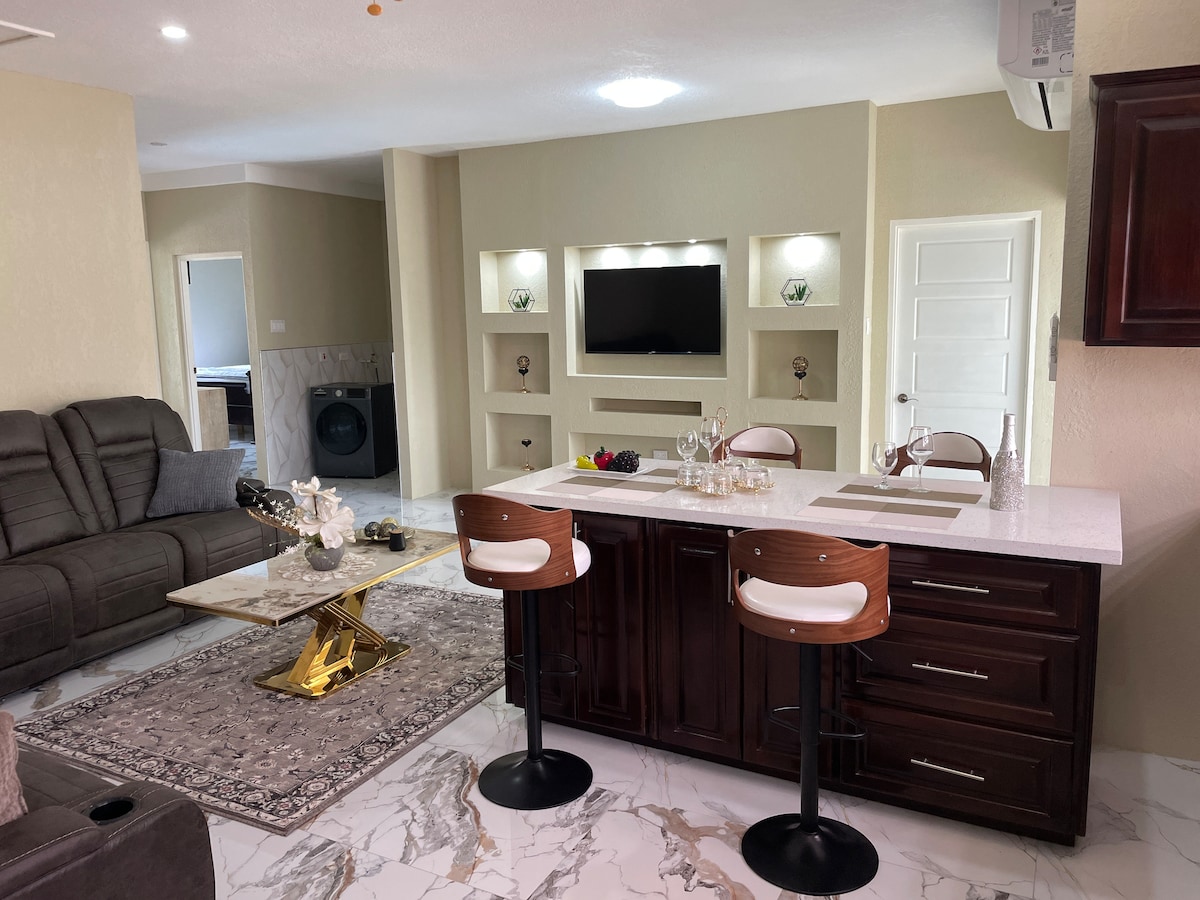 Luxury Penthouse in Prime Kingston Location Stay in modern luxury at this 1BR/2BA penthouse in a secure 24/7 gated complex near New Kingston, Half Way Tree, and Downtown. Enjoy a king-size bed, queen pullout sofa (sleeps 4), high-speed WiFi, Smart TVs, a fully equipped kitchen, and in-unit laundry. Ideal for business and leisure, with free parking and 24-hour self-check-in. Close to restaurants, embassies, and top attractions. Adults and kids 13+ welcome. Book now!