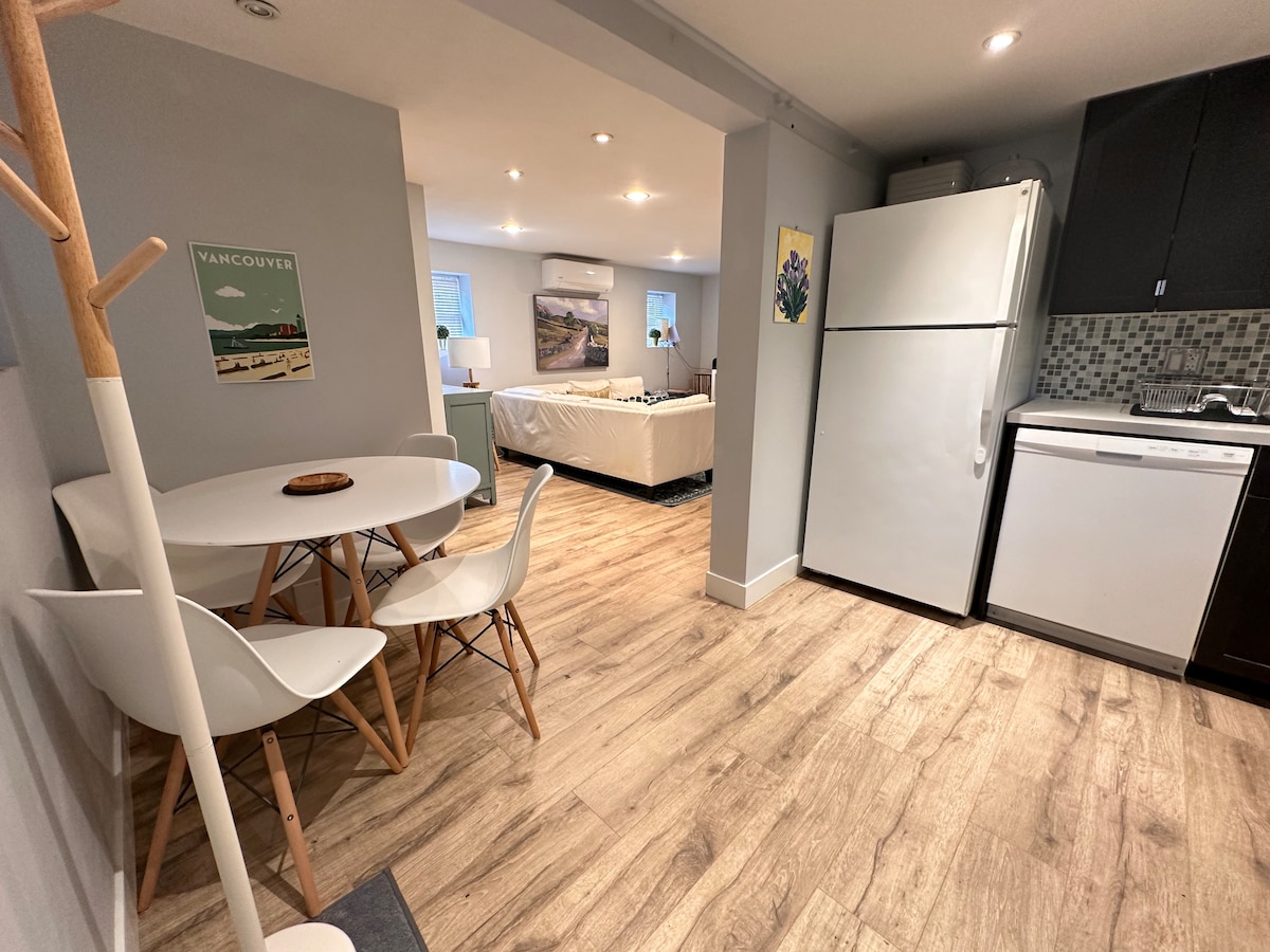Benvenuto nella tua suite privata al piano inferiore della nostra casa storica completamente ristrutturata. Questo spazio dispone di servizi ed elettrodomestici moderni, con un arredamento elegante e un ambiente pulito. Facile accesso a una varietà di negozi, ristoranti, un negozio di alimentari, un centro commerciale, biblioteca, museo, cinema, linee di autobus, lavanderia e altro ancora. Goditi i numerosi parcheggi in strada o le comode opzioni di transito. L'Anvil Centre e la stazione SkyTrain distano solo 12-15 minuti a piedi; in alternativa, puoi utilizzare l'autobus diretto.