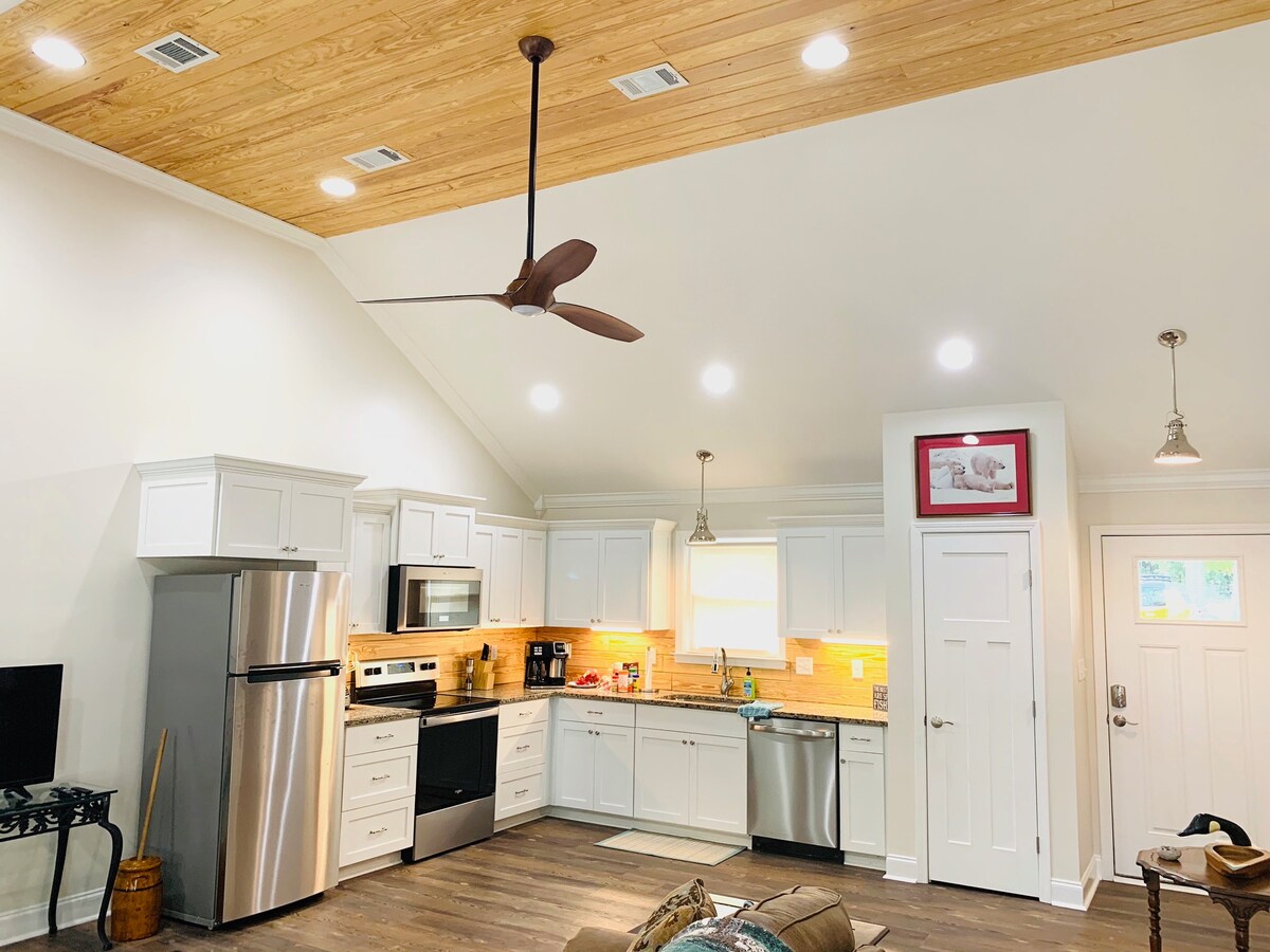 Prenditela con calma in questo spazio unico e rilassante, situato su 100 acri e immerso nella quiete di uno stagno privato. La casa è stata originariamente costruita nel 1921 e nel 2018 l'abbiamo spostata vicino allo stagno e abbiamo fatto una ristrutturazione completa, preservando il più possibile il carattere originale. Sorseggia il caffè del mattino e ammira l'alba dal dondolo del portico o da uno dei moli dello stagno. La proprietà offre sentieri naturalistici da esplorare, pesca e tanta fauna selvatica.