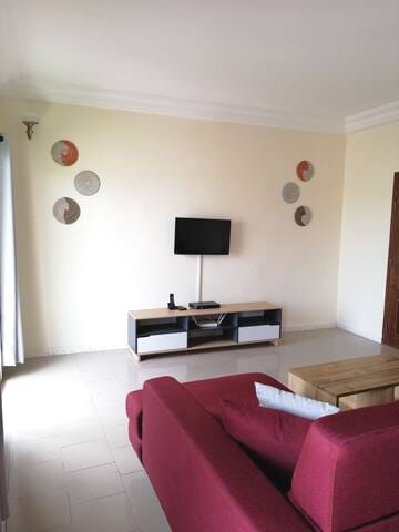 Profitez d'un séjour tout confort dans notre appartement cosy, idéalement situé à 5 minutes des principales attractions des almadies. La sécurité est notre priorité avec des gardiens h24 Un espace lumineux et aéré avec une chambre avec literie orthopédique pour un sommeil réparateur, un salon accueillant et une cuisine équipée (plaque, micro-onde, ustensiles, réfrigérateur). le service de ménage est inclus 3 fois par semaine. N hesitez pas a me dire si vous voulez gouter à des plats senegalais.