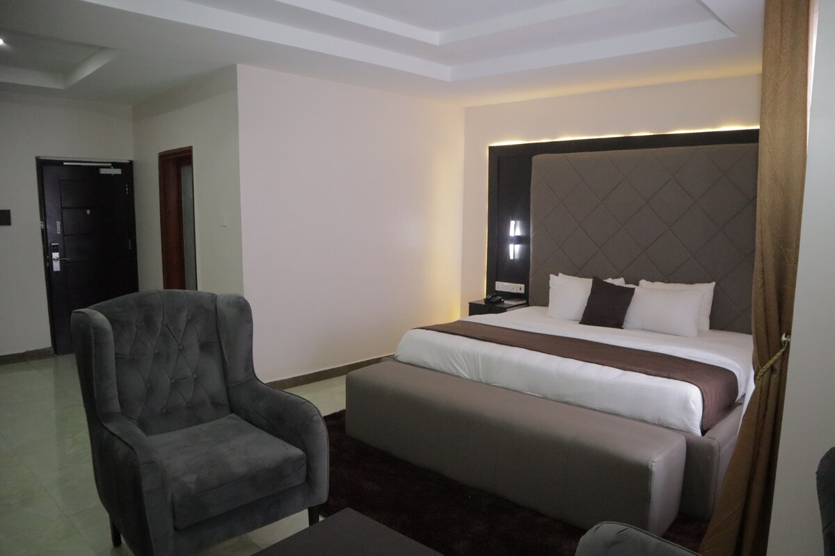Emco Apartments offre il massimo del lusso ed è il luogo ideale per l'abitante urbano di Enugu. Dal momento in cui entri nel tuo appartamento arredato con gusto e completamente arredato, saprai di aver trovato casa. Edificio ultramoderno con ampio spazio nei locali, monitoraggio CCTV 24 ore su 24, l'edificio è recintato e protetto, adatto a famiglie con bambini o sei ospiti adulti, Wi-Fi abilitato, ogni unità dispone di Smart TV in tutte le stanze e zona giorno con Netflix e altro ancora, biancheria da letto, asciugamani, articoli da toeletta,