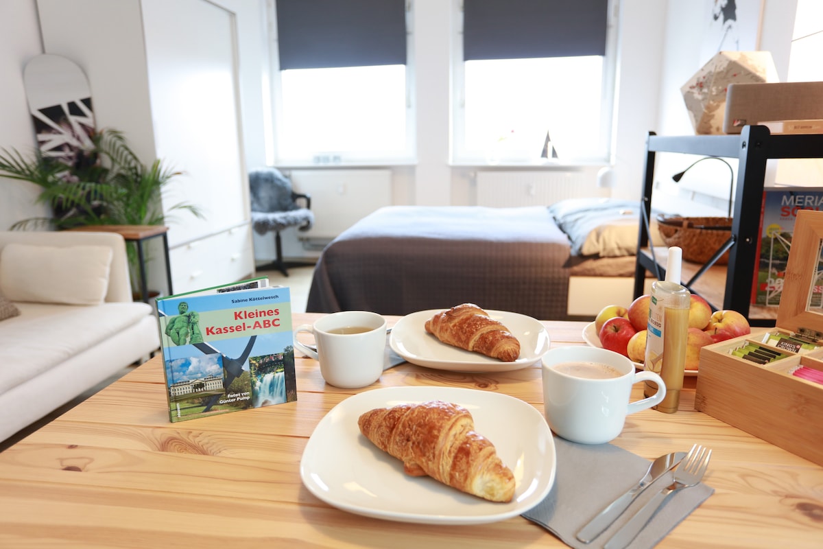 Ti aspetta un elegante appartamento nella parte anteriore ovest. Nel vecchio edificio con soffitti alti e un grande senso dello spazio, completamente ristrutturato e con un panorama mozzafiato. Perfetto per un viaggio breve o un'intera settimana. Arredata in modo incantevole con tutto quello di cui hai bisogno! Tutto a pochi passi: tram, autobus, ristoranti, bar, centro città. Il miglio di Kassel è molto vicino, ma abbastanza lontano per dormire sereno. Ideale per due persone. 3 ° piano, purtroppo senza ascensore!!!