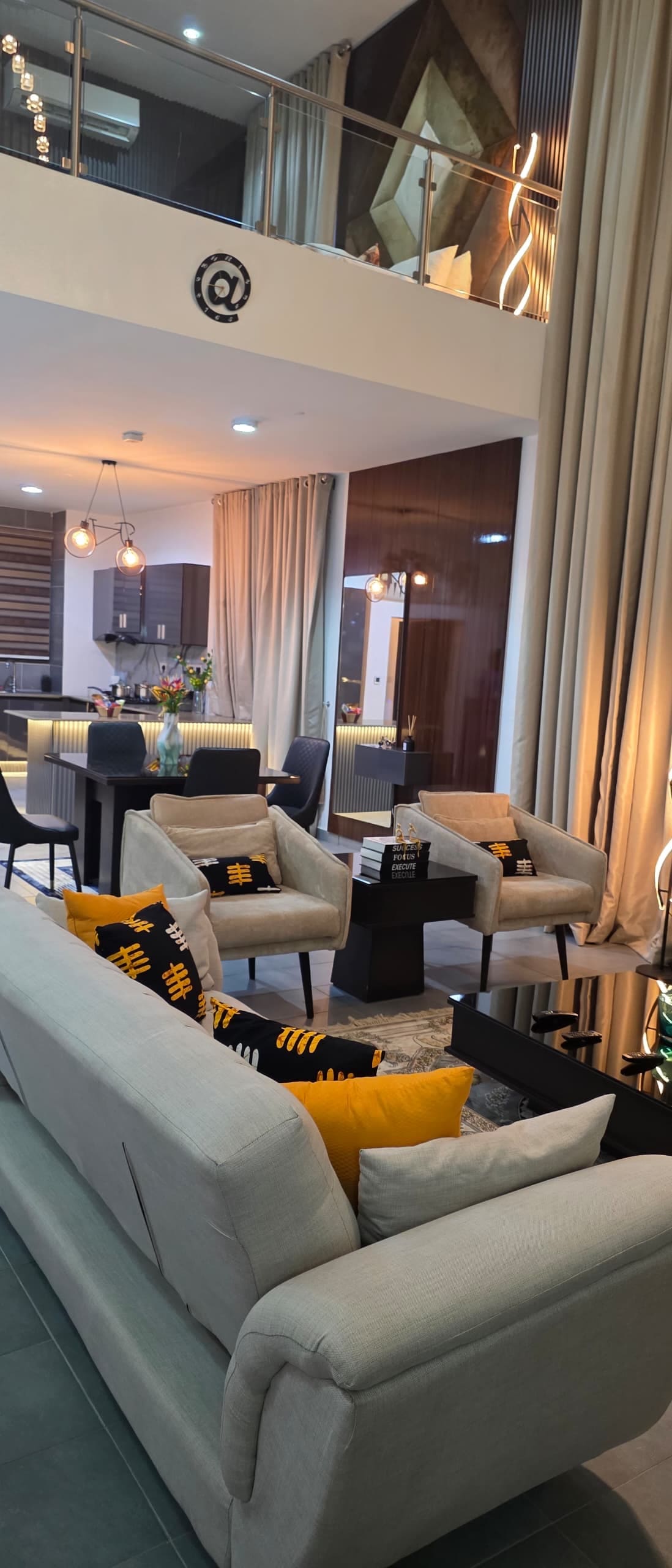 Our beautiful 4-bedroom duplex is located in the serene and secure Lekki Palm City Estate, Offering a perfect blend of comfort, elegance and functionality. The apartment boasts a breathtaking lake view that brings peace and calm, making it ideal for both relaxation and work-from-home stays. With 24/7 electricity and wide range of amenities to cater to your needs, our home guarantees a seamless and enjoyable experience. everything is in place to make your time absolutely unforgettable.