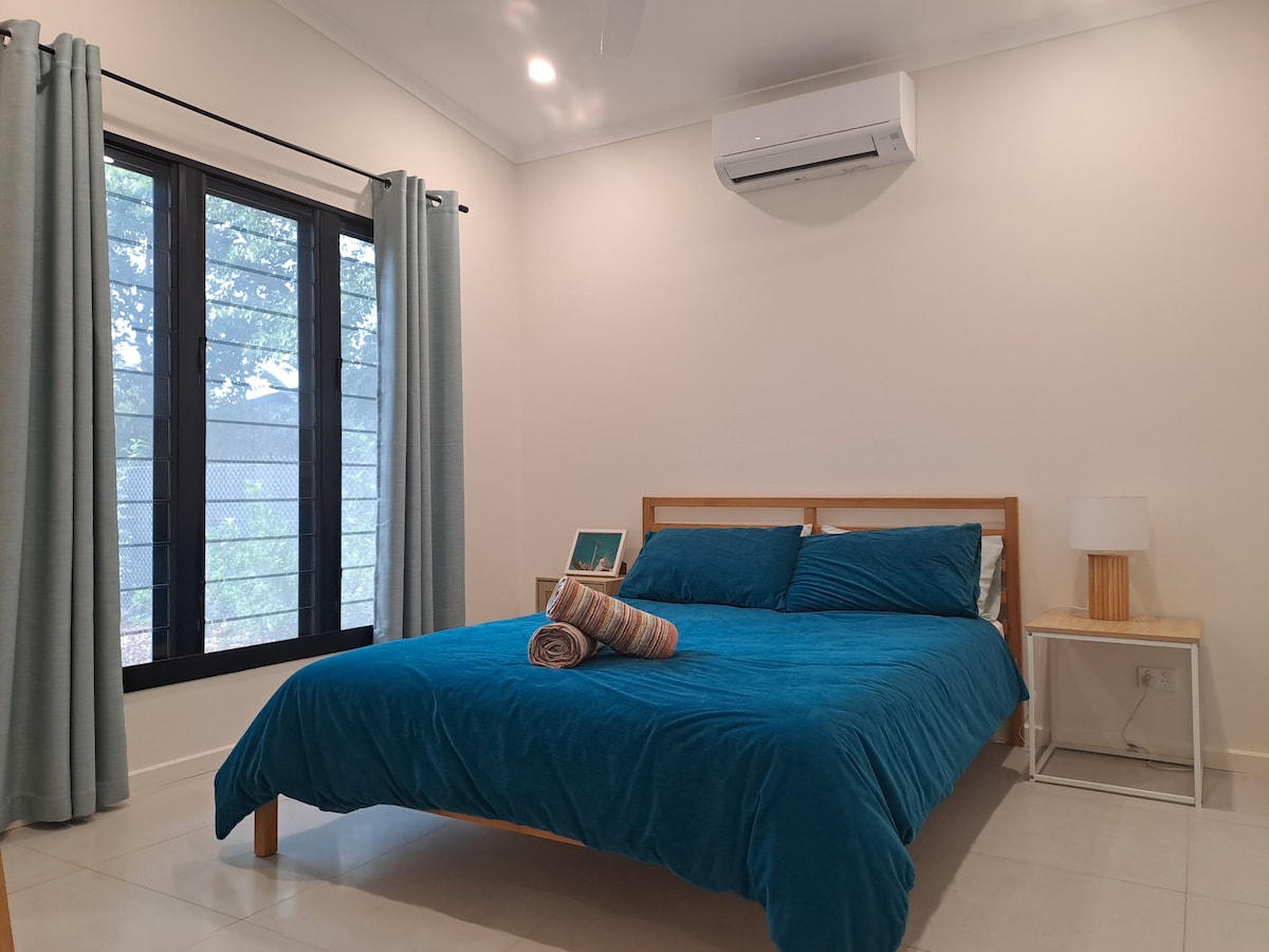Enjoy a comfortable stay in this new, private 2 bedroom house on our property in Nightcliff. It features its own driveway access and undercover locked carpark giving complete privacy and security. Inside, you'll find a large open-plan living area, a full-sized kitchen with plenty of bench space, two generous bedrooms each with comfortable queen-sized beds, TV with Netflix, and a washing machine for your convenience. An outdoor setting and BBQ provide a perfect space to relax and unwind