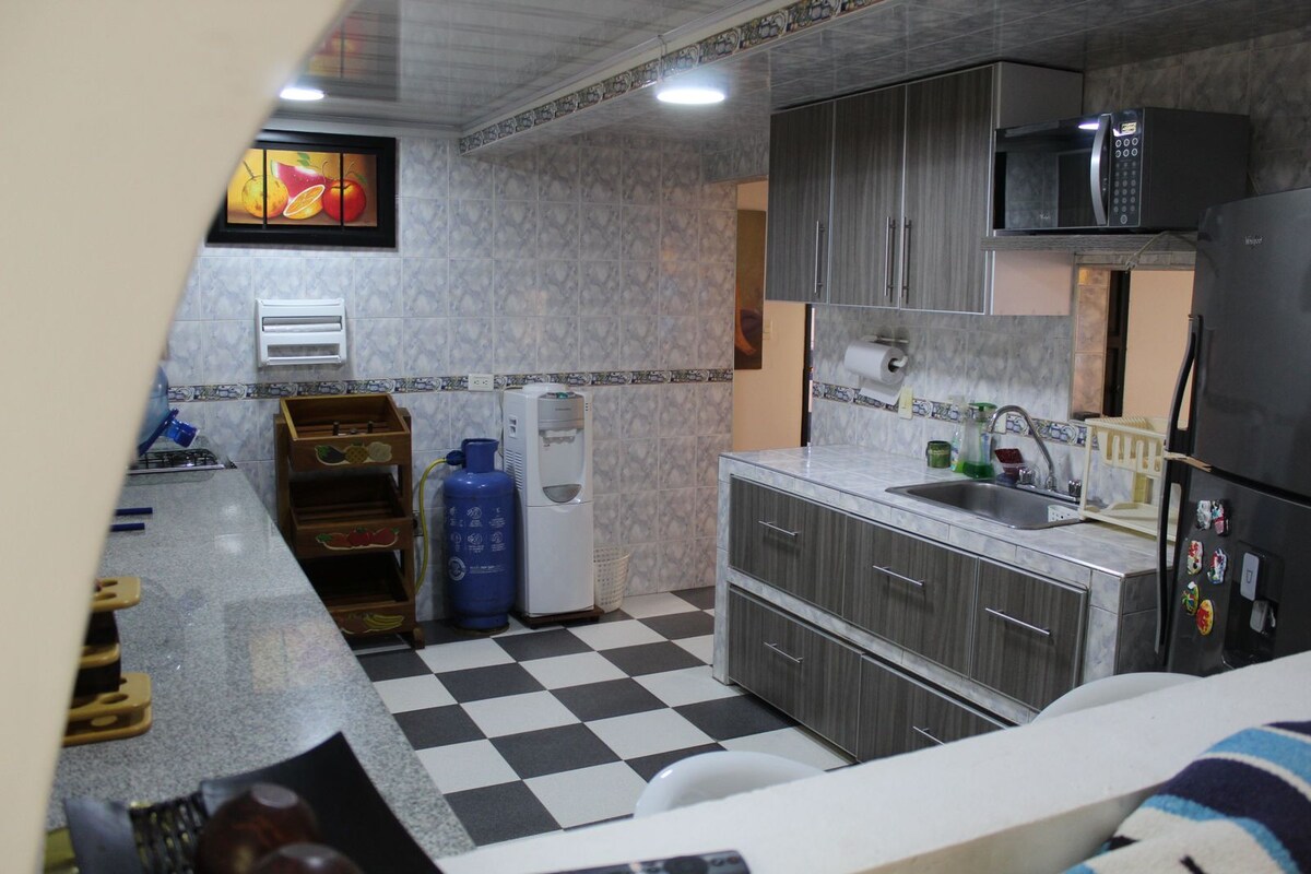 Goditi una vacanza indimenticabile nella nostra casa con ampi spazi verdi. Situato in mezzo a una splendida valle, circondato da tutta la bellezza che il campo di Boyacence ha da offrire. Rilassati nelle amache in giardino ricche di natura, organizza un barbecue nel barbecue e divertiti sui campi da shuffle. La casa ha una cucina, una zona pranzo e un ampio soggiorno per le vostre riunioni di famiglia. Offriamo anche un parcheggio privato per un massimo di 5 veicoli. Ideale per famiglie e gruppi!