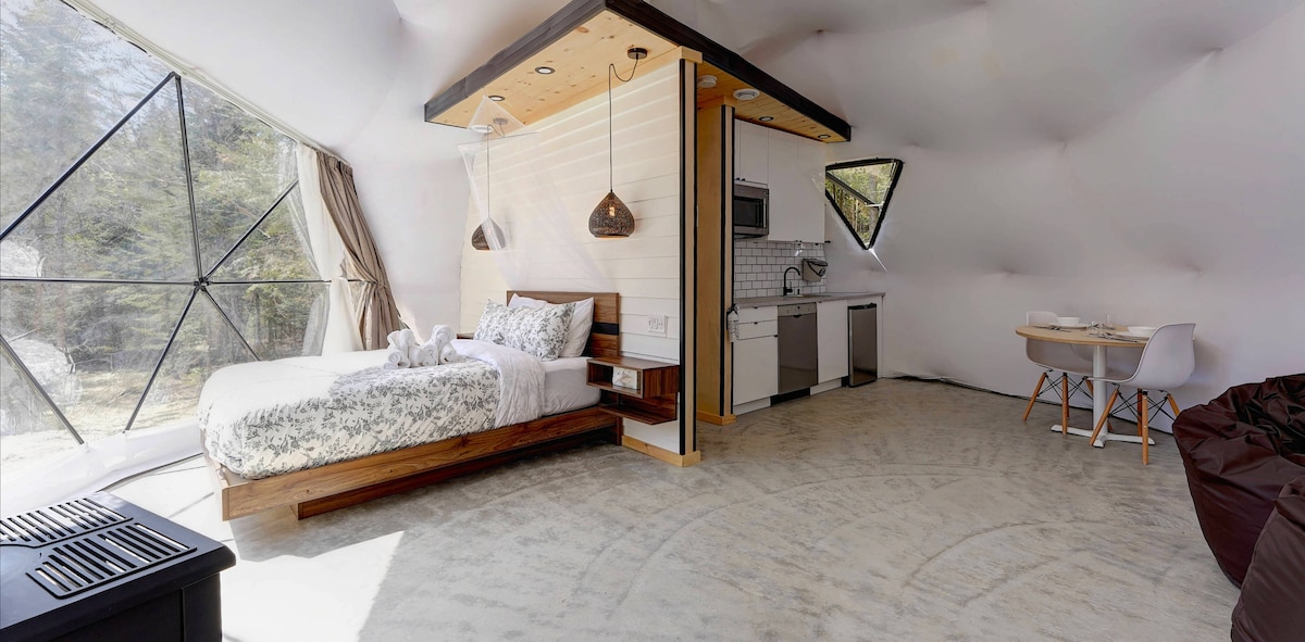 Visita il nostro profilo Airbnb per scoprire le nostre 6 cupole private! : ) Benvenuti al Domaine l'Évasion! Goditi una fuga romantica sotto un cielo stellato. Rilassati nella tua spa privata di 4 stagioni, immersa nel cuore di una foresta di conifere, cullata dal canto degli uccelli. A ★ 25 minuti da Tremblant Spa ★ privata per 4 stagioni ★ Caminetto a gas al coperto Pozzo ★ del fuoco ★ Area picnic e barbecue ★ Percorso escursionistico ★ Doccia privata ★ Cucina completa ★ Aria condizionata