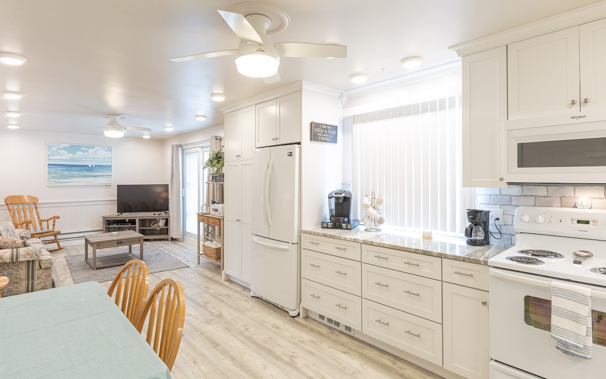 Piccolo (200 sf) recentemente ristrutturato monolocale fronte oceano con splendida vista sull'oceano e posto auto assegnato in un lotto privato. Monolocale con bagno completo con vasca/doccia, angolo cottura completamente attrezzato e bar per la colazione. Arredato con una combinazione letto a muro/ divano che si trasforma facilmente dal giorno alla notte. Potrai goderti il tuo sonno sul materasso in memory foam da 10 pollici aggiornato. Facile accesso all'unità con una combinazione di porte numeriche da fornire prima del soggiorno.