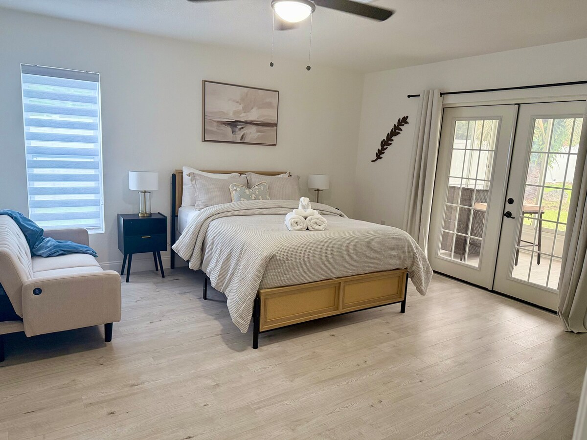 Il Garden Cottage si trova nel quartiere storico di Brooksville, a pochi passi da negozi, ristoranti, campi da tennis e pickleball, studio di yoga e piste ciclabili. A 32 km a est del Golfo del Messico, dove è possibile pescare, raccogliere capesante e osservare i lamantini (in stagione). Parcheggio in loco per barca e rimorchio. Cucina completa, camera da letto, bagno, soggiorno e lavanderia. L'aeroporto internazionale di Tampa dista 84 km, mentre quello di Orlando 150 km. La location perfetta per esplorare la Nature Coast.