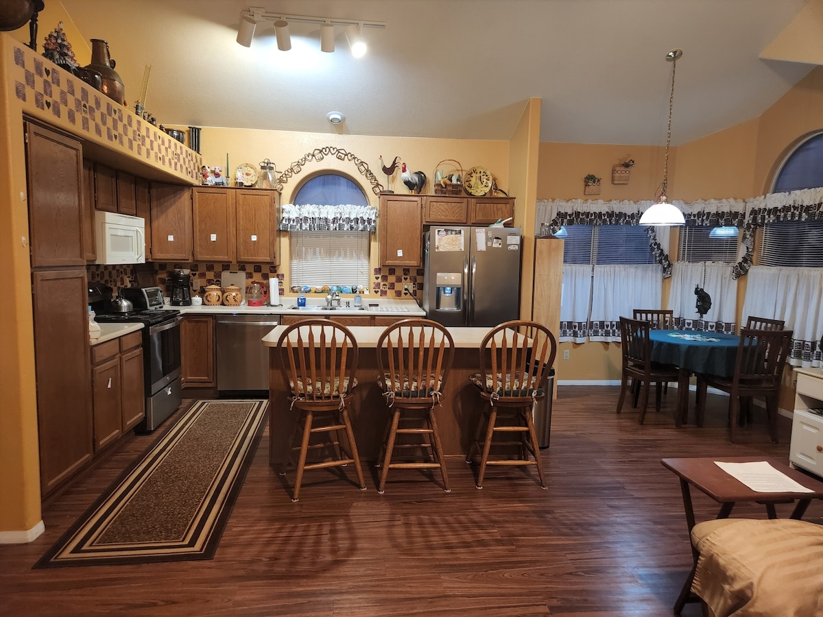 Immersa nella comunità privata di Estrella Mountain Ranch a Goodyear, in Arizona, Casa Polaris è una casa con piscina, 3 camere da letto e 2 bagni, che offre oltre 140 metri quadrati di spazio abitativo, per riunioni e ricreativo. Goditi la vita all'aria aperta mentre ti rilassi nella piscina privata, accendi il barbecue e il braciere nel cortile o percorri i sentieri vicini. Accomodati agli sgabelli della cucina completamente attrezzata, guarda i tuoi sport preferiti o le serie TV più interessanti sulla TV da 75 pollici o partecipa alle riunioni di lavoro su Zoom nell'area ufficio designata.
