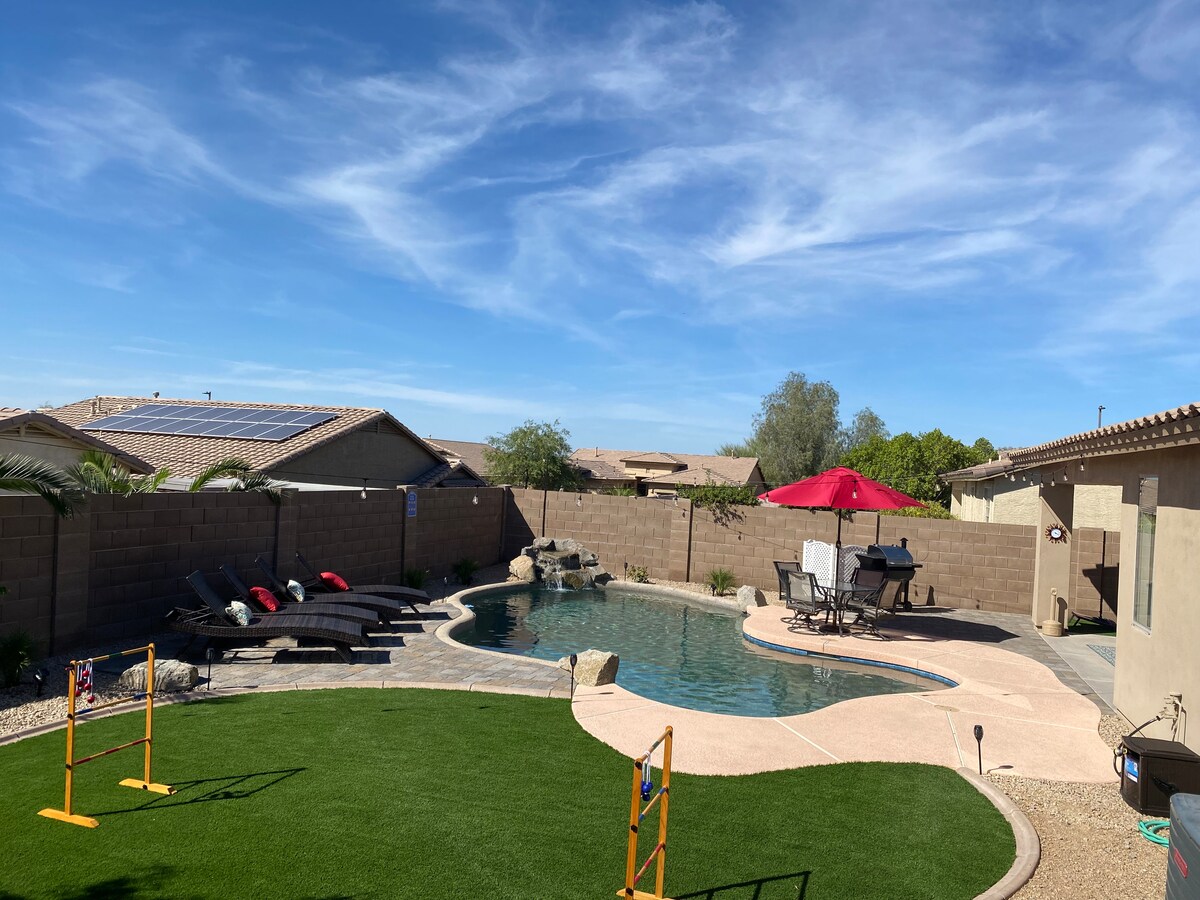 Great place for a family or two! 2450 sq foot w/a fantastic layout, 10’ ceilings & a light open feeling.2 parking spots. All of the comforts of home & our favorite place to be. You will love Estrella Mtn Ranch community & the amenities of the area.Recommend googling the location to take advantage of all there is to do outside your door. Will discount to encourage longer stays, please email if you are planning so we can discuss. No overnight street parking Short-Term Rental License STR000098