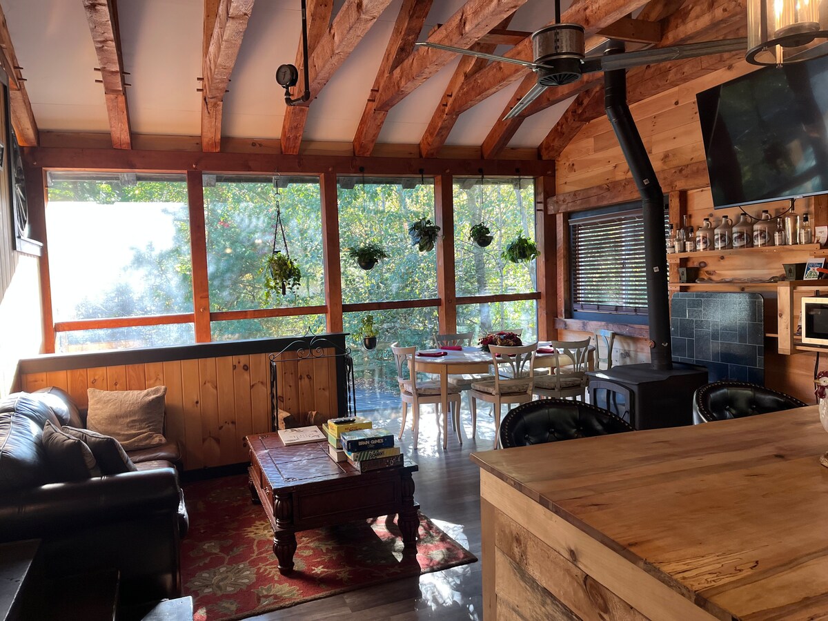 Il Mountain Mews, un edificio di 100 anni a un piano, a basso consumo energetico e accessibile ai disabili, si trova in un complesso familiare nel cuore del Catskill Park, vicino al Belleayre Ski Center. Vivi la natura incontaminata in un ambiente privato unico. Rallenta con i giochi da tavolo nella grande sala o con il barbecue all'aperto sul patio in pietra, che offre una vista incantevole. Un grande tavolo da fattoria con posti a sedere per 8 persone, una cucina moderna e una camera con letti a castello pensati per i bambini ti aspettano! Stacca la spina per almeno una settimana. Ricarica EV di livello 2 da 19 kW 80 A a 0,20 USD/kWh