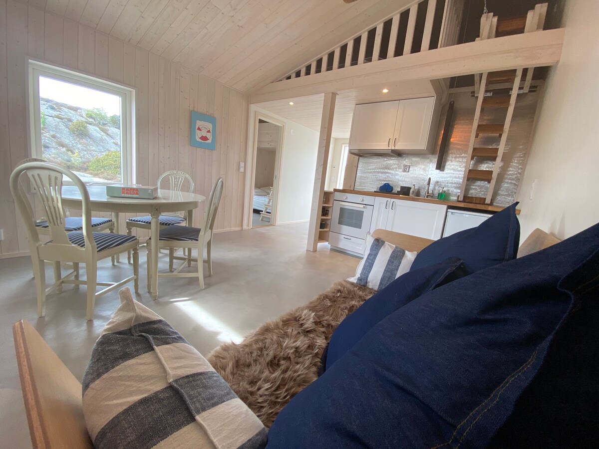 Hus på 44kvm med möjlighet att bo fem personer. Huset är vackert beläget med utsikt över ängar och berg. Framför huset finns en stor gräsmatta som kan användas för lekar och andra aktiviteter. Det är fem minuters promenad till havet och i viken finns en eka som man får låna. På ön finns en fiskaffär och restaurang, också den fem minuters promenad från huset. Naturen på ön är mångskiftande med öppet hav och klippor i väst, små jordbruk och skog mitt på ön.