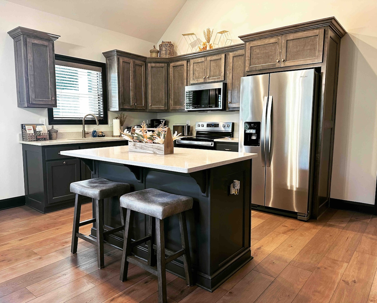 Ti meriti una vacanza in un rifugio di prim'ordine! Killer View Cabin con caricabatterie EV ha una vista mozzafiato tutto l'anno; è vicino alla città, ai laghi e alle attrazioni! Rilassati nella vasca idromassaggio, radunati intorno al focolare all'aperto o gioca ai numerosi giochi ad alta e bassa tecnologia offerti. Resta connesso con Internet ad alta velocità e uno spazio di lavoro dedicato. Ti piace lo sport?... c'è la tv via cavo! Come arrivare: la strada quasi interamente asfaltata disponibile, che conduce al parcheggio pianeggiante, rende l'arrivo senza stress alla nostra incantevole baita.