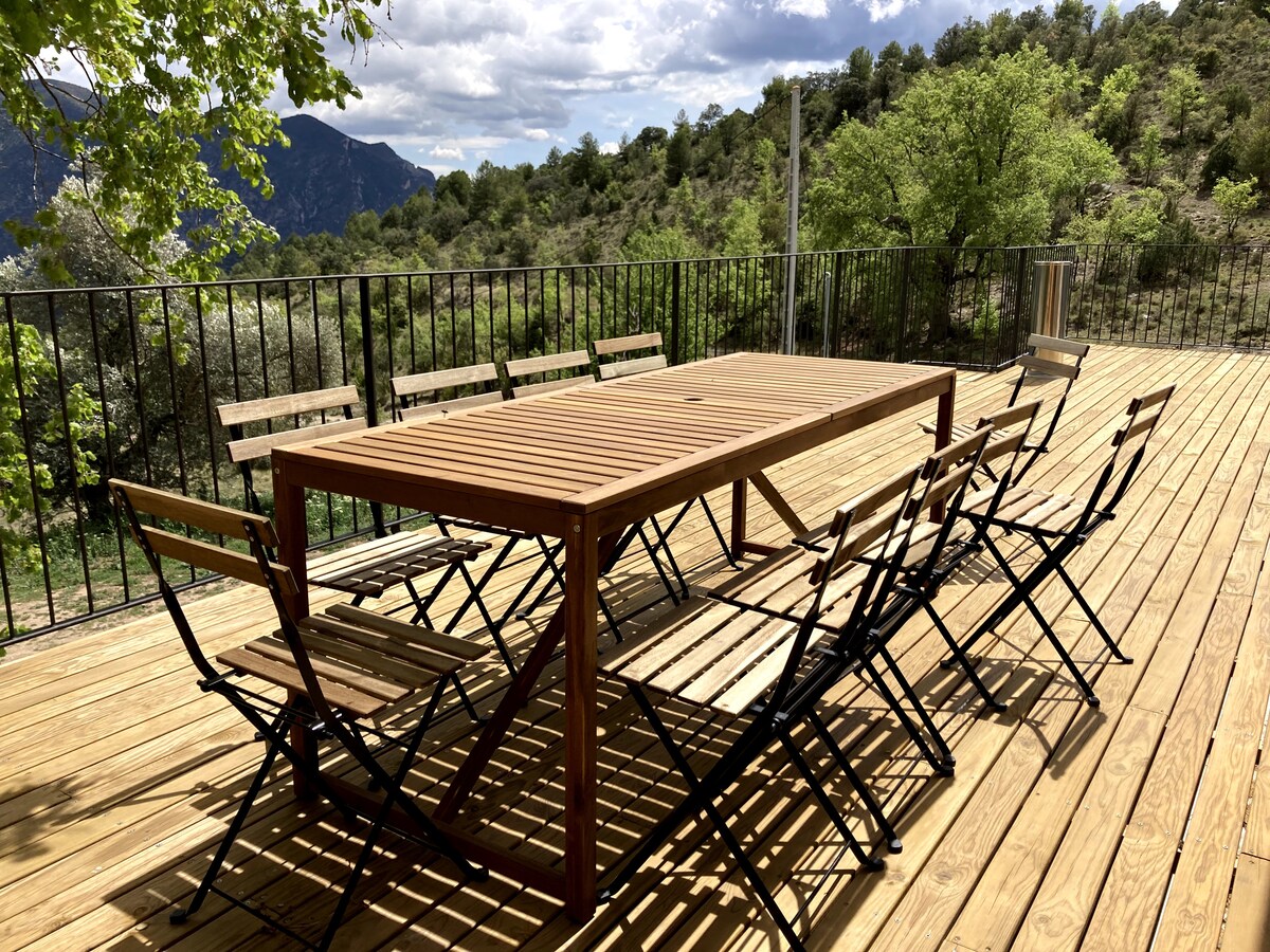 Appartamento situato a Casa Pau, un'antica casa colonica del XVII secolo, nel villaggio di Naens, comune di Senterada, regione del Pallars Jussà (Pirenei di Lleida). 2-4 ospiti · 1 camera da letto · 1 letto matrimoniale · 1 divano letto per 2 persone · 1 bagno · 1 terrazza · 1 cucina completa-sala da pranzo · lavatrice · stufa a legna e riscaldamento.
