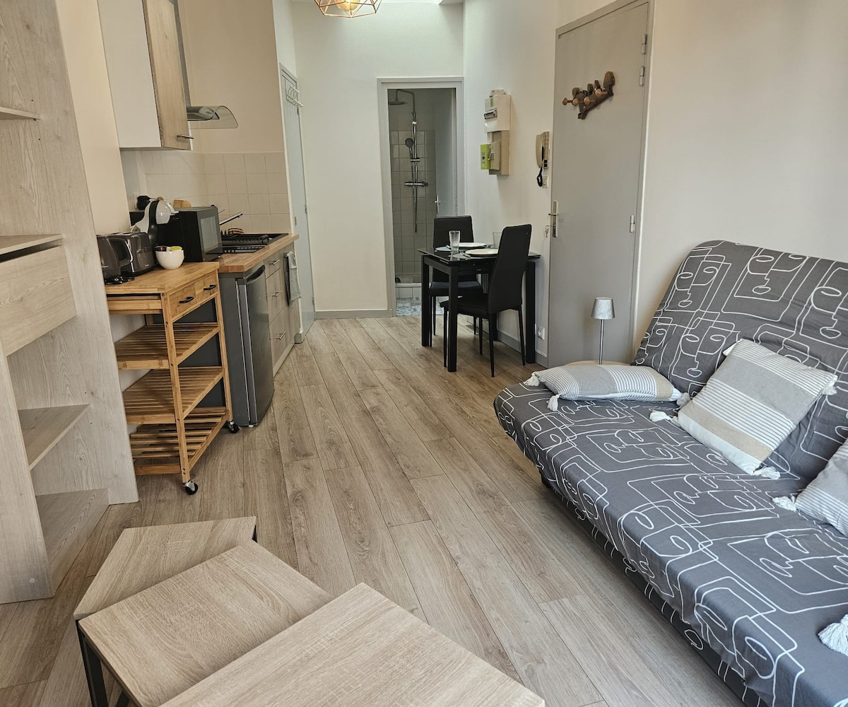 Appartamento T2 pieno di fascino (40 m2), con accesso indipendente e autonomo. Situato a 5 minuti a piedi dalla stazione ferroviaria, a 10 minuti a piedi dalle strade pedonali e dal centro storico della città. A pochi passi dai mezzi pubblici Accesso esclusivo a un cortile. Letto matrimoniale e divano letto per 2 persone.