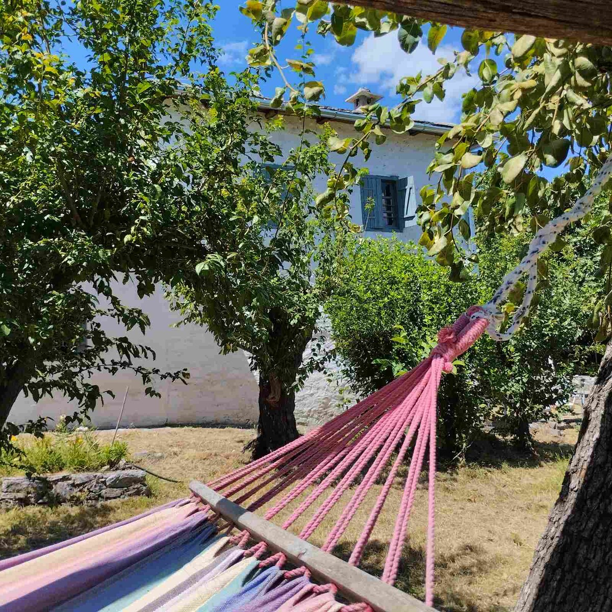 Ina luogo benedetto abbiamo creato con grande cura una casa indipendente completamente ristrutturata. Gli antenati della famiglia nel 1905 costruirono questo edificio con la tendenza neoclassica del tempo, per l'uso di un piccolo negozio. Oggi abbiamo pensato di ristrutturarlo e offrire comfort e tranquillità al visitatore, in una fattoria verde piena di ortensie, alberi da frutto e affacciata sul blu infinito del Mar Egeo. Accanto c'è la vecchia casa a schiera del 1737